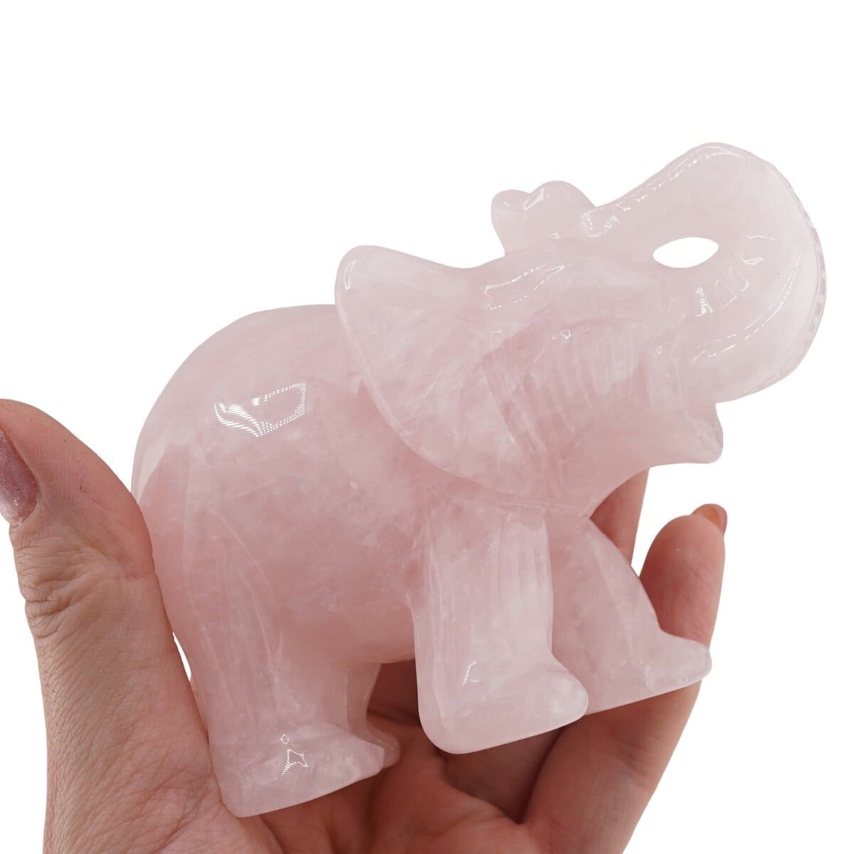 Figurina gravată elefant din Cuart roz - 10cm