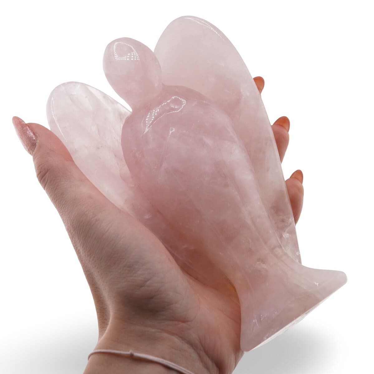 Fiind realizată din cuart roz natural, fiecare figurină păstrează farmecul autentic al pietrei. Se recomandă a fi păstrată într-un loc ferit de lovituri, pentru a-i menține aspectul îngrijit în timp. Prin formă, culoare și material, această figurină gravată Înger din cuart roz aduce împreună valoarea decorativă și dimensiunea simbolică într-un mod simplu, cald și ușor de integrat în orice spațiu personal.