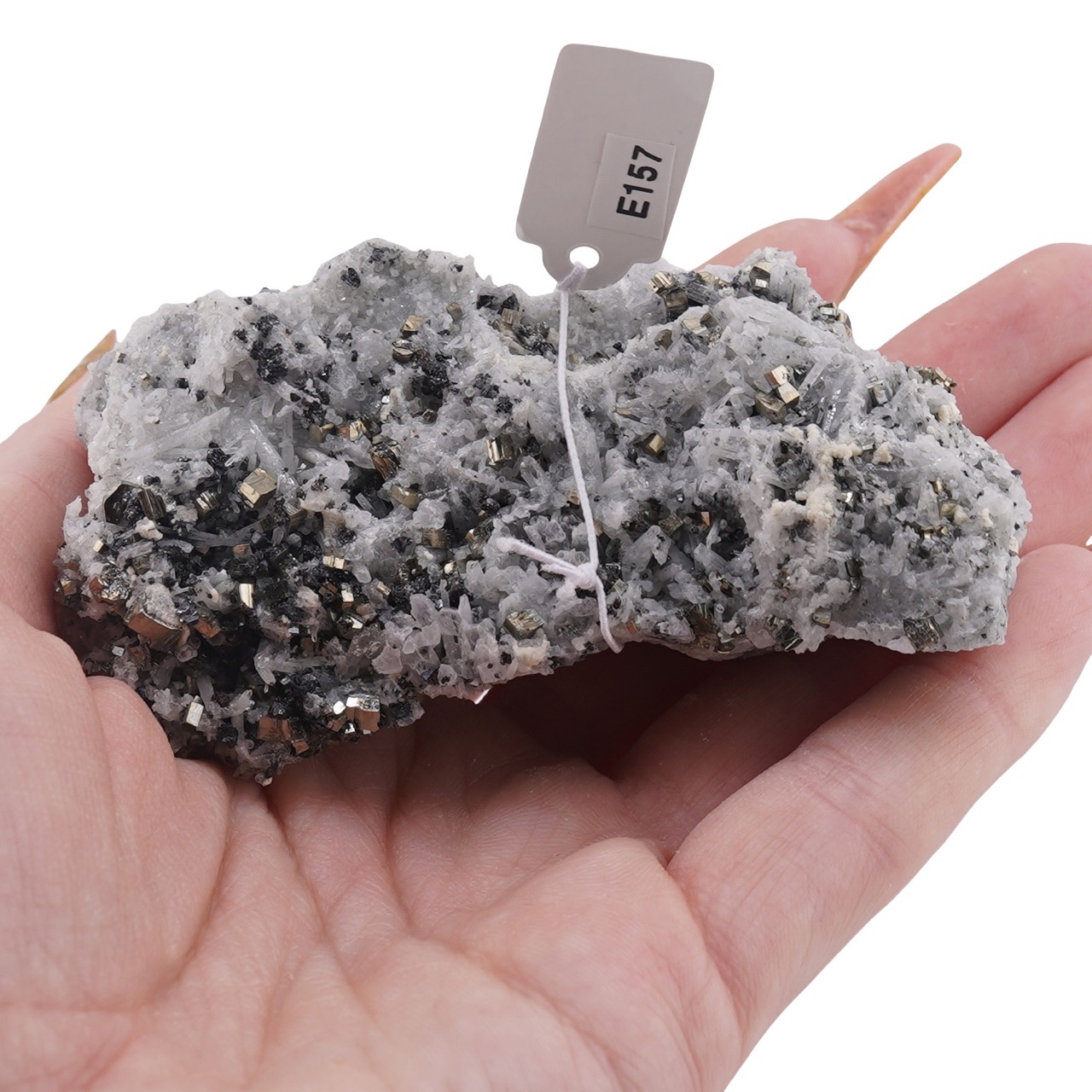 Îngrijirea este simplă: șterge suprafața cu o cârpă moale și păstreaz-o ferită de umezeală excesivă și substanțe chimice agresive, astfel încât strălucirea piritei și claritatea cuarțului să rămână la fel de expresive în timp. Compoziția naturală îi conferă rezistență în utilizarea obișnuită, iar formatul compact o face ușor de așezat sau de mutat acolo unde îți dorești.