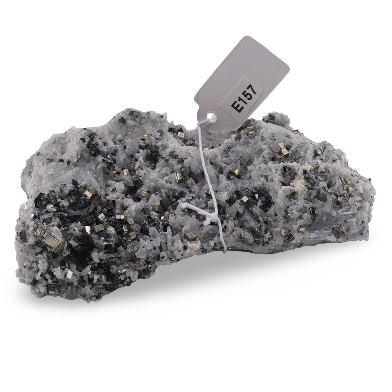 Descoperă farmecul mineral al unei flori de mină provenite din Bulgaria, un cristal de colecție marcat E157, alcătuit integral din cristal natural 100%. Structura sa reunește trei minerale îndrăgite de colecționari: transparența calmă a cuarțului, luciul metalic al piritei și tonurile profunde ale sfaleritului. Împreună, creează un joc subtil de culori și texturi care atrage privirea și stârnește curiozitatea.