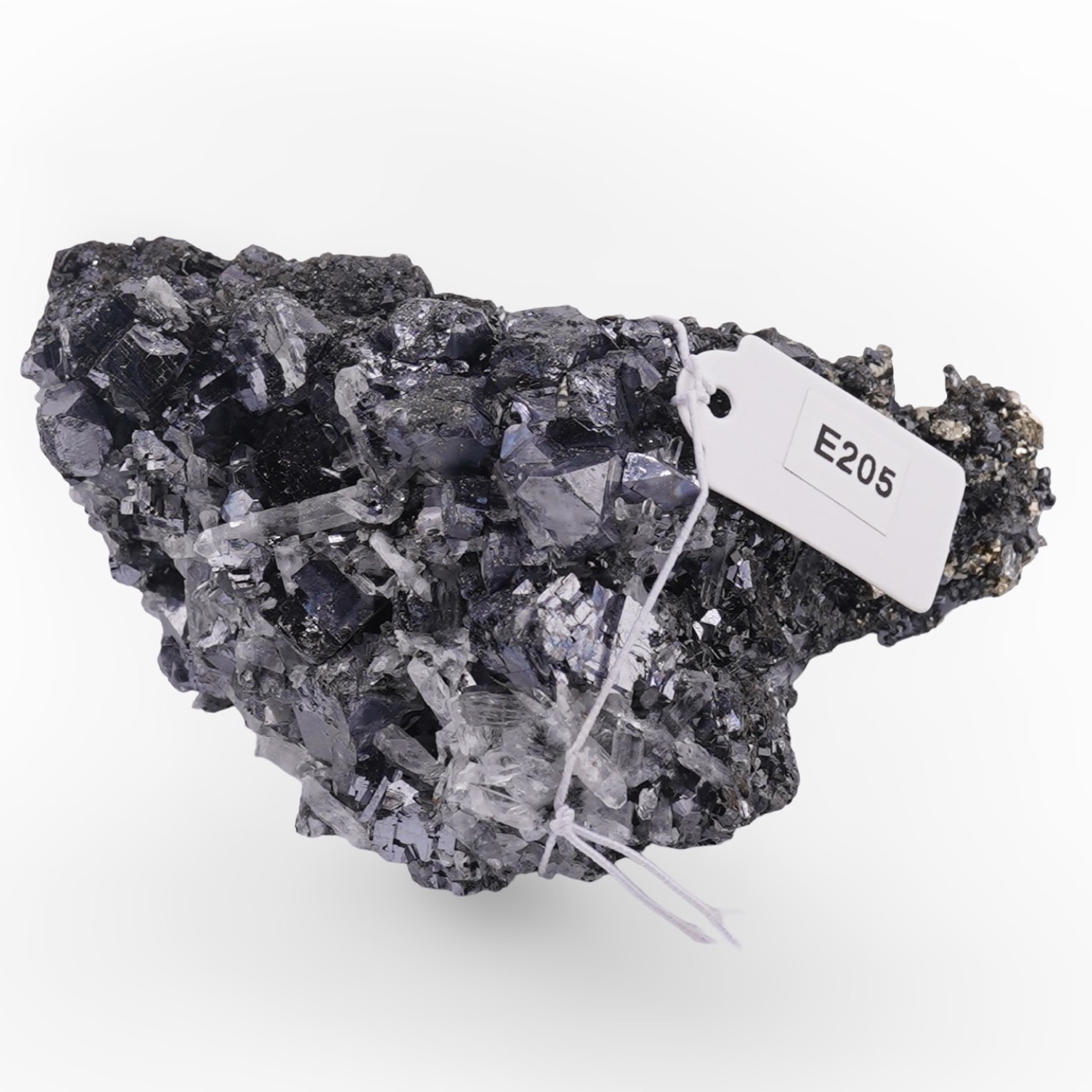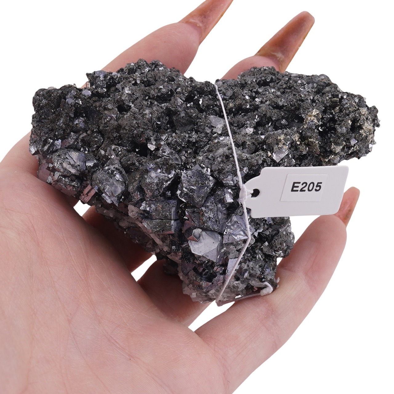 Piesa este realizată din cristal natural, 100%, evidențiind clar trăsăturile specifice fiecărui mineral: reflexele metalice ale galenei, transparența și luminozitatea cuartului și nuanțele calde ale sfaleritului. Forma compactă o face ușor de integrat pe o etajeră, într-o vitrină sau pe birou, iar senzația plăcută la atingere transmite autenticitatea unui specimen extras și curățat cu grijă. E205 păstrează caracterul unei flori de mină în stare naturală, potrivită pentru a completa o colecție deja începută sau pentru a marca un început inspirat.