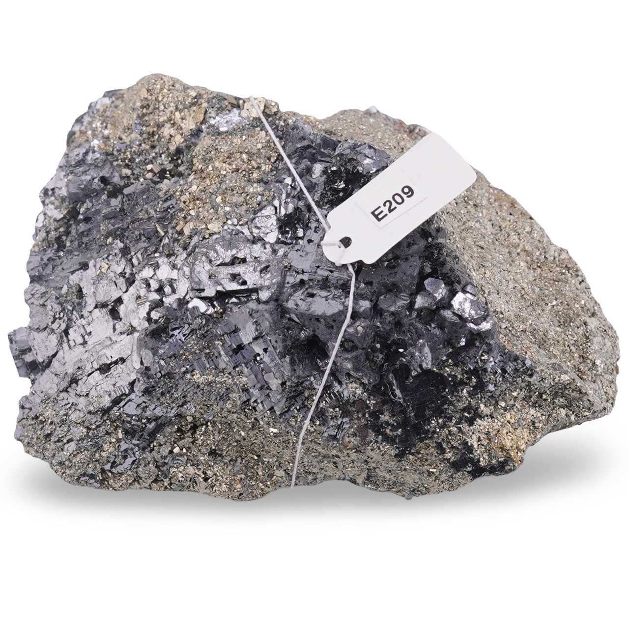 Structura sa combină prezența solidă a galenei cu luciu metalic, accentele aurii ale piritei și contrastele profunde ale sfaleritului. Împreună creează o compoziție care captează lumina în moduri diferite, de la reflexii discrete până la sclipiri calde, evidențiind textura inedită specifică florelor de mină. Este genul de cristal pe care îl privești din mai multe unghiuri și de fiecare dată descoperi un nou detaliu.
