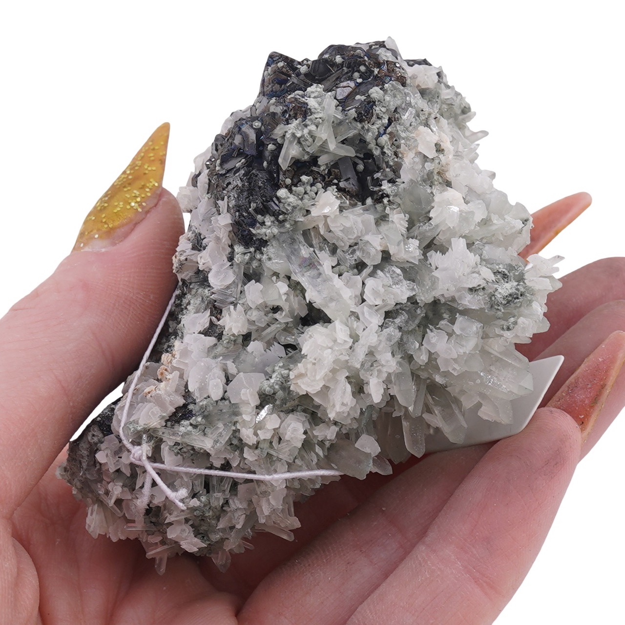 Structura naturală, 100% autentică, pune în valoare contrastul dintre tonurile deschise ale baritinei și luciul rece al galenei, completate de strălucirile fine ale sfaleritului și claritatea cristalelor de cuarț. Fiecare detaliu păstrează povestea formării sale, oferind o piesă reprezentativă pentru universul pietrelor semiprețioase. Modelul E223 se remarcă prin armonia compoziției, păstrând totodată un aer de naturalețe, fără intervenții sau tratamente.