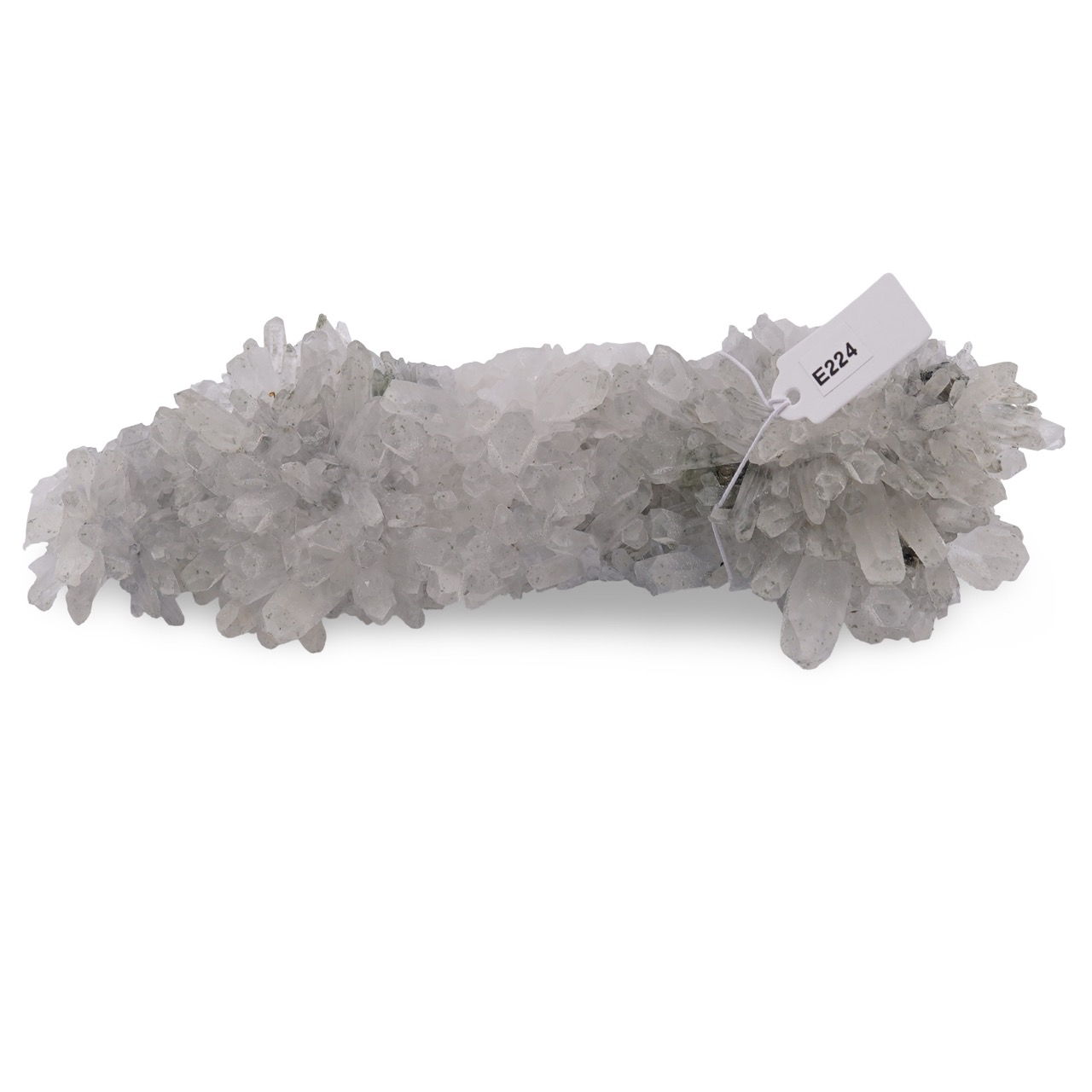 E224 este o floare de mină formată natural în Bulgaria, un cristal de colecție creat de timp și presiune, fără intervenții artificiale. Piesa este 100% cristal natural, alcătuită din cuart cu incluziuni fine de clorit și accente discrete de pirită, sprijinite pe matrice de rocă. Textura și contrastul dintre transparența cuartului, nuanțele verzi ale cloritului și luciul metalic al piritei aduc un joc plăcut de lumină, care pune în valoare detaliile minerale.
