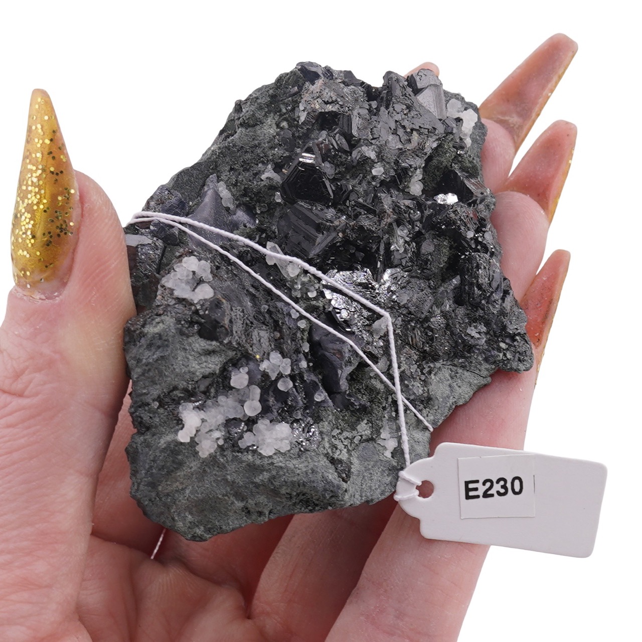 Cu dimensiuni de aproximativ 7 cm x 5,5 cm și o greutate de circa 102 g, E230 este ușor de integrat în vitrină, pe o etajeră sau pe birou. Se potrivește într-un colț dedicat mineralelor naturale, dar și ca accent discret în spații luminoase, unde poate fi admirat din mai multe unghiuri.