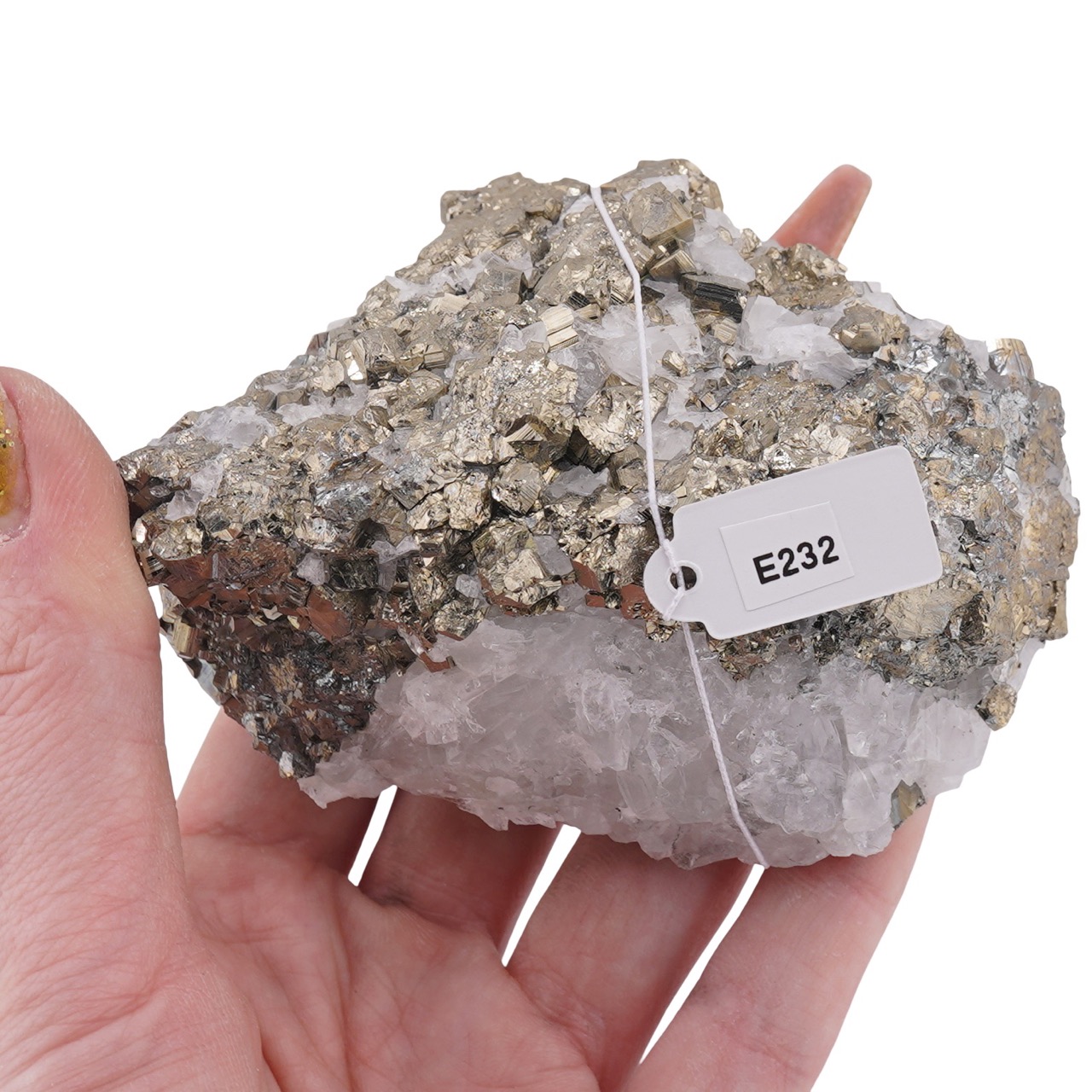 Este un cristal natural 100%, neprelucrat, păstrând autenticitatea pe care o cauți în pietrele semiprețioase de vitrină. Compoziția cuartului, în nuanțe deschise, și a piritei, cu reflexe puternice, creează un joc de lumină plăcut în orice decor. Privit din unghiuri diferite, specimenul evidențiază geometrii fine, ideale pentru fotografiere sau pentru un colț dedicat pasionaților de minerale.