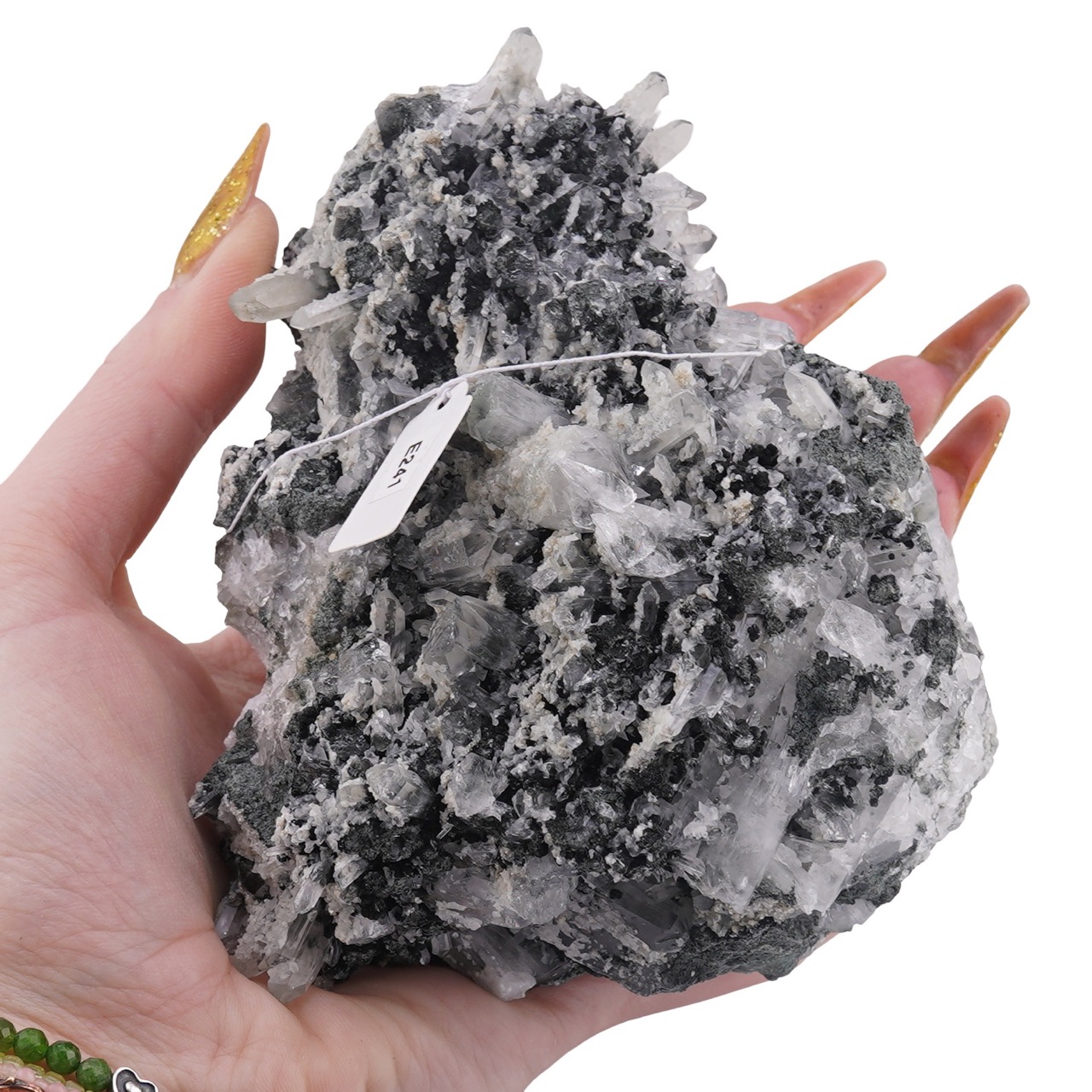 Descoperă farmecul mineral autentic al Bulgariei prin această floare de mină, un cristal natural format în timp, cu texturi și reflexii care captează privirea. Piesa combină armonios cuartul transparent cu nuanțe fine de clorit și contrastele metalice ale sfaleritului, oferind o compoziție vizuală plăcută, în care transparența și opacitatea se întâlnesc într-un joc discret de lumini. Modelul E241 este gândit pentru tine dacă apreciezi pietrele semiprețioase și cauți un accent decorativ cu personalitate.