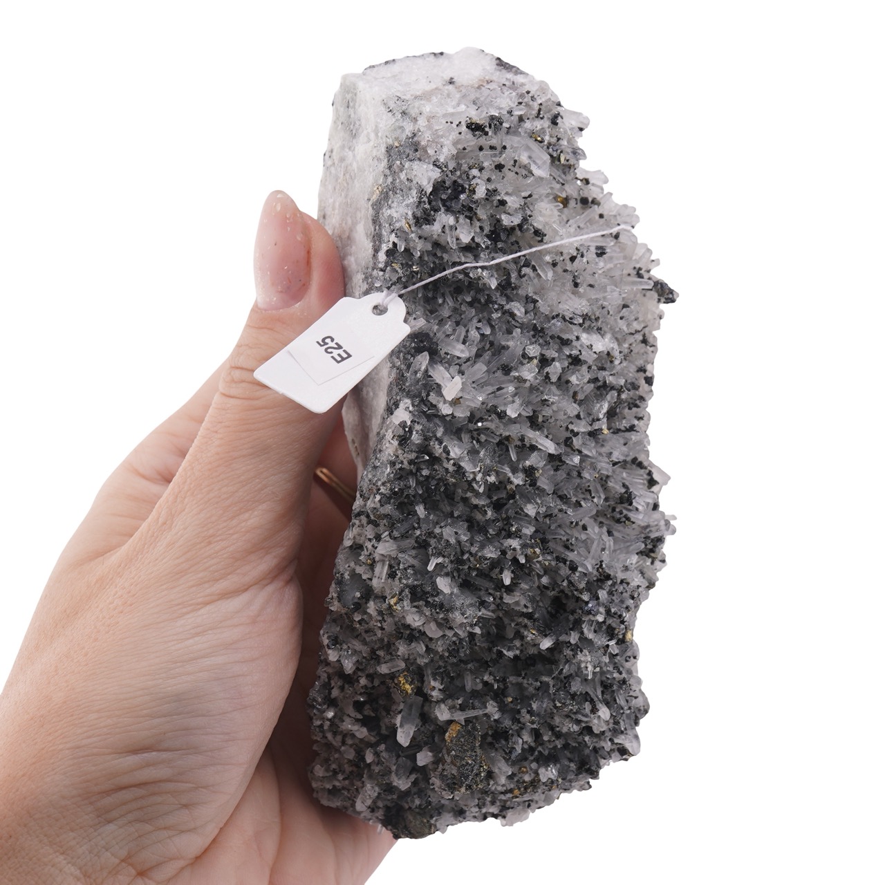 Dacă îți dorești un obiect care să spună o poveste prin forme naturale, această floare de mină răspunde discret, dar sigur. O poți integra într-un colț de relaxare pentru un plus de calm vizual, o poți folosi ca subiect pentru fotografie macro sau ca piesă de conversație atunci când primești musafiri. Fie că ești la început de drum în colecționarea mineralelor sau cauți un specimen remarcabil prin combinația de cuart, galenă, clorit și pirita, E25 îți oferă un echilibru plăcut între eleganță și naturalețe.