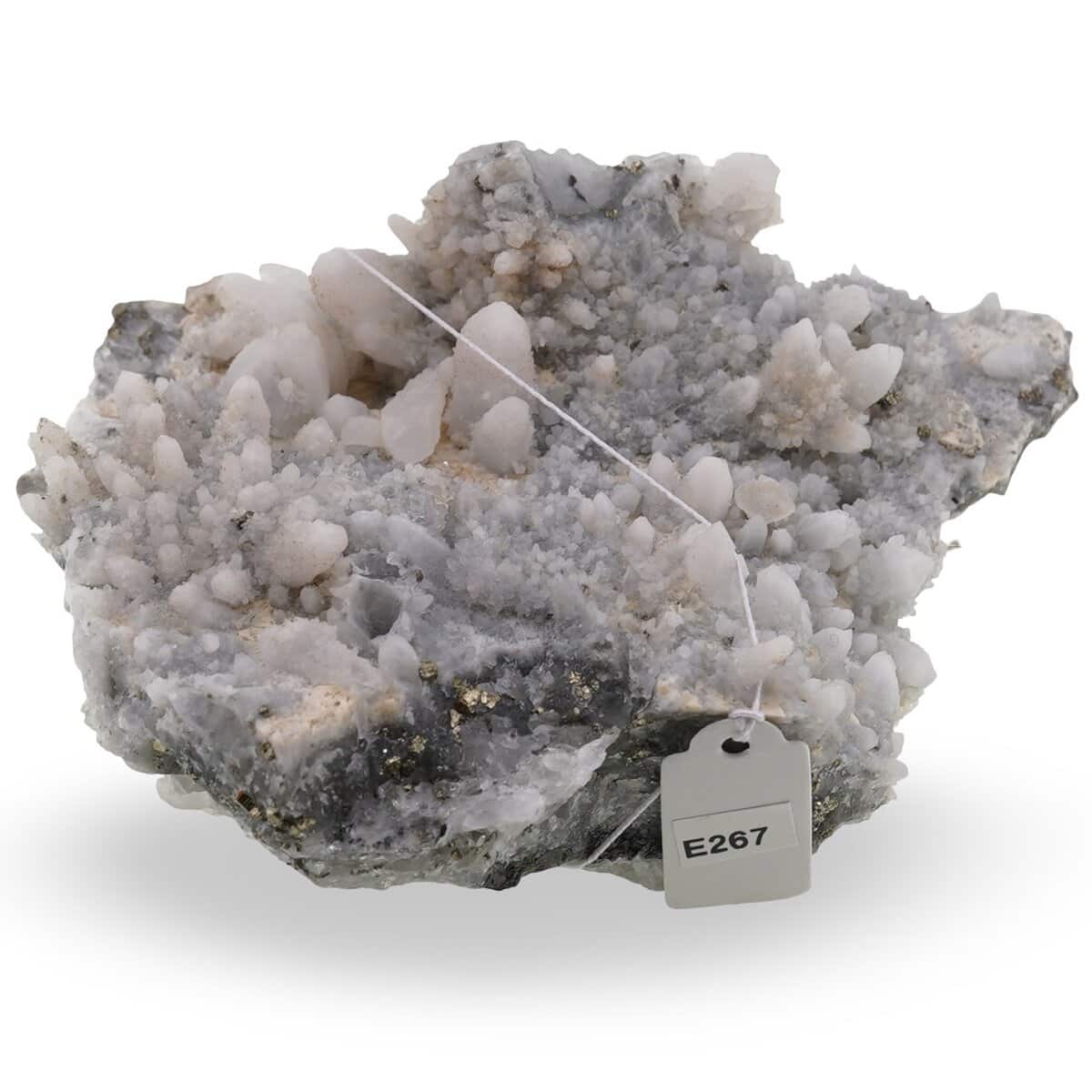 Descoperă farmecul discret al unei piese create de natură: Floare de mină E267, un cristal de colecție provenit din Bulgaria, apreciat pentru aspectul său organic și pentru felul în care captează lumina. Formată din cristal natural 100%, această floare de mină îmbină într-o manieră firească o matrice de cuart druzos cu accente metalice de pirită și cristale clare de cuart, oferind o textură bogată și contraste plăcute privirii.
