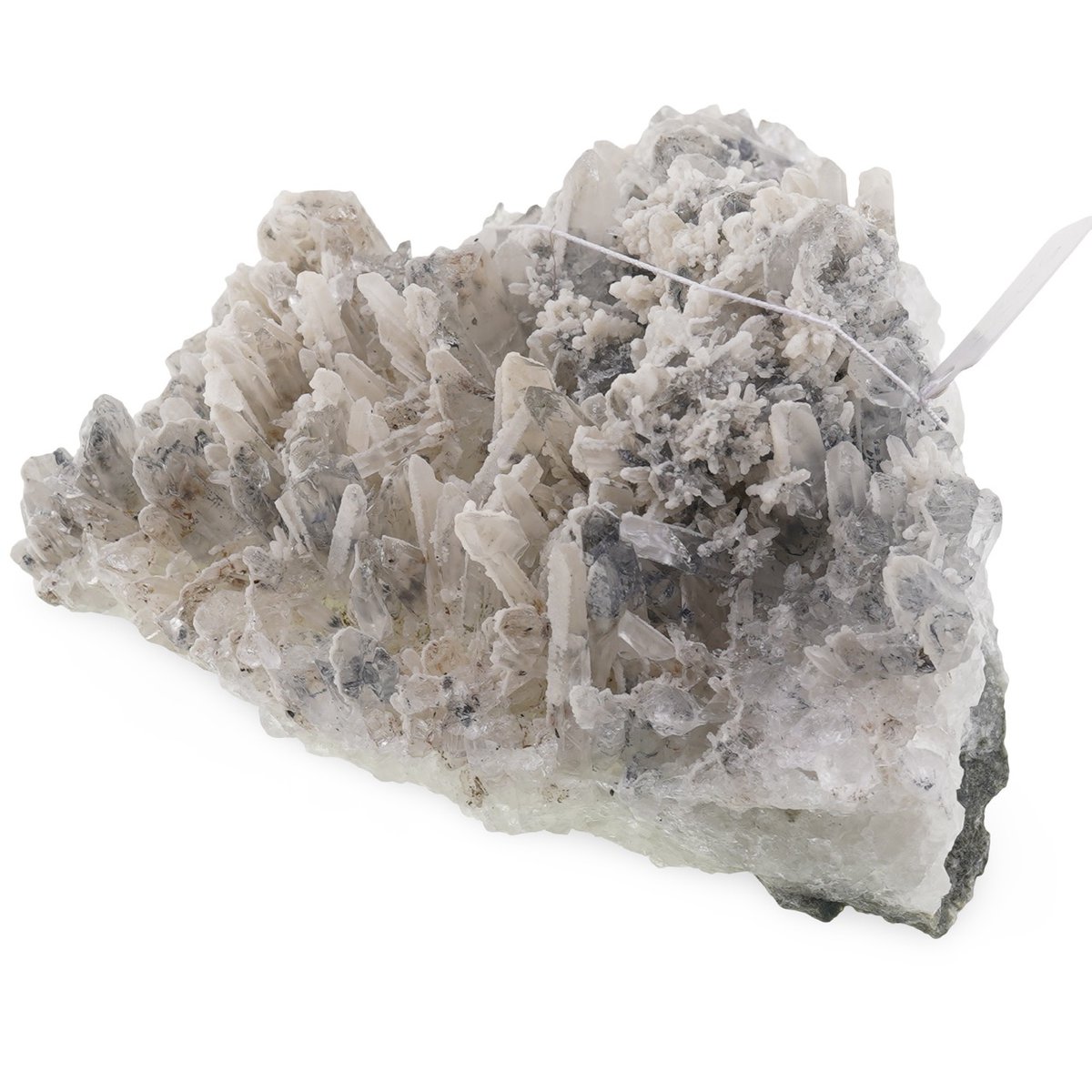 Structura sa tip „floare” dezvăluie aglomerări de cristale dispuse armonios, iar prezența cuartului adaugă claritate și un luciu discret, ușor de observat în lumină. Fiecare fațetă surprinde alt detaliu, făcând din acest exemplar o prezență aparte în orice decor. Materialul este integral cristal natural, păstrat în forma sa autentică, fără intervenții care să-i altereze aspectul.