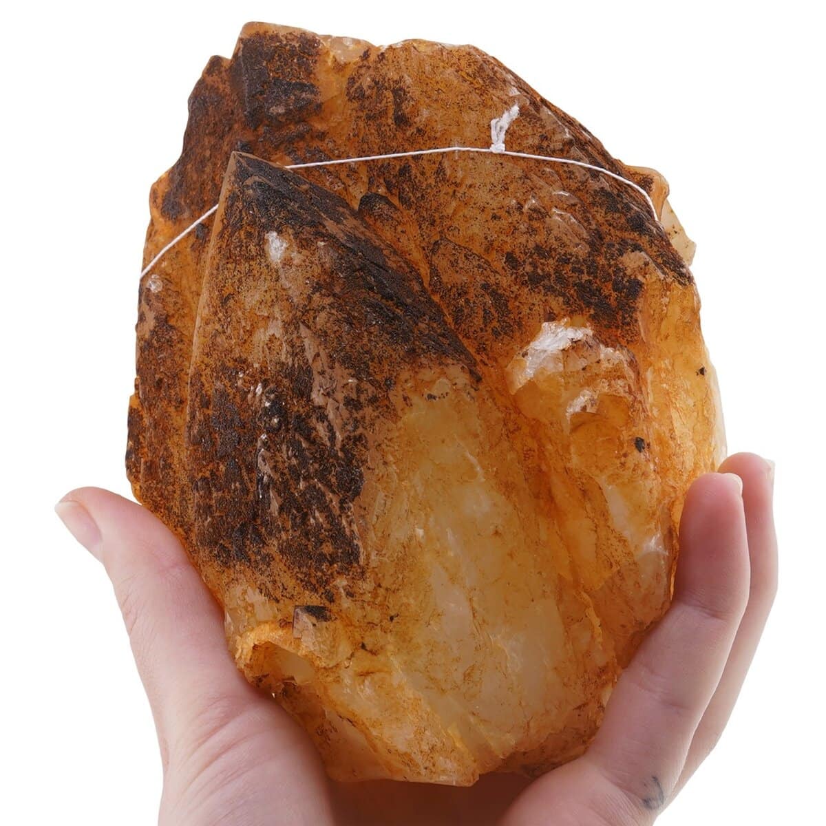Piesa este 100% din cristal natural și păstrează farmecul unei formări geologice nealterate. Gamele de alb-lăptos și auriu-ruginiu se completează armonios, iar suprafețele delicate surprind lumina în moduri diferite pe parcursul zilei. Dimensiunile de aproximativ 12 × 9,5 cm și greutatea de 1266 g îi dau stabilitate pe orice suport, astfel încât o poți expune în siguranță pe un birou, pe o etajeră sau într-o vitrină dedicată colecțiilor.