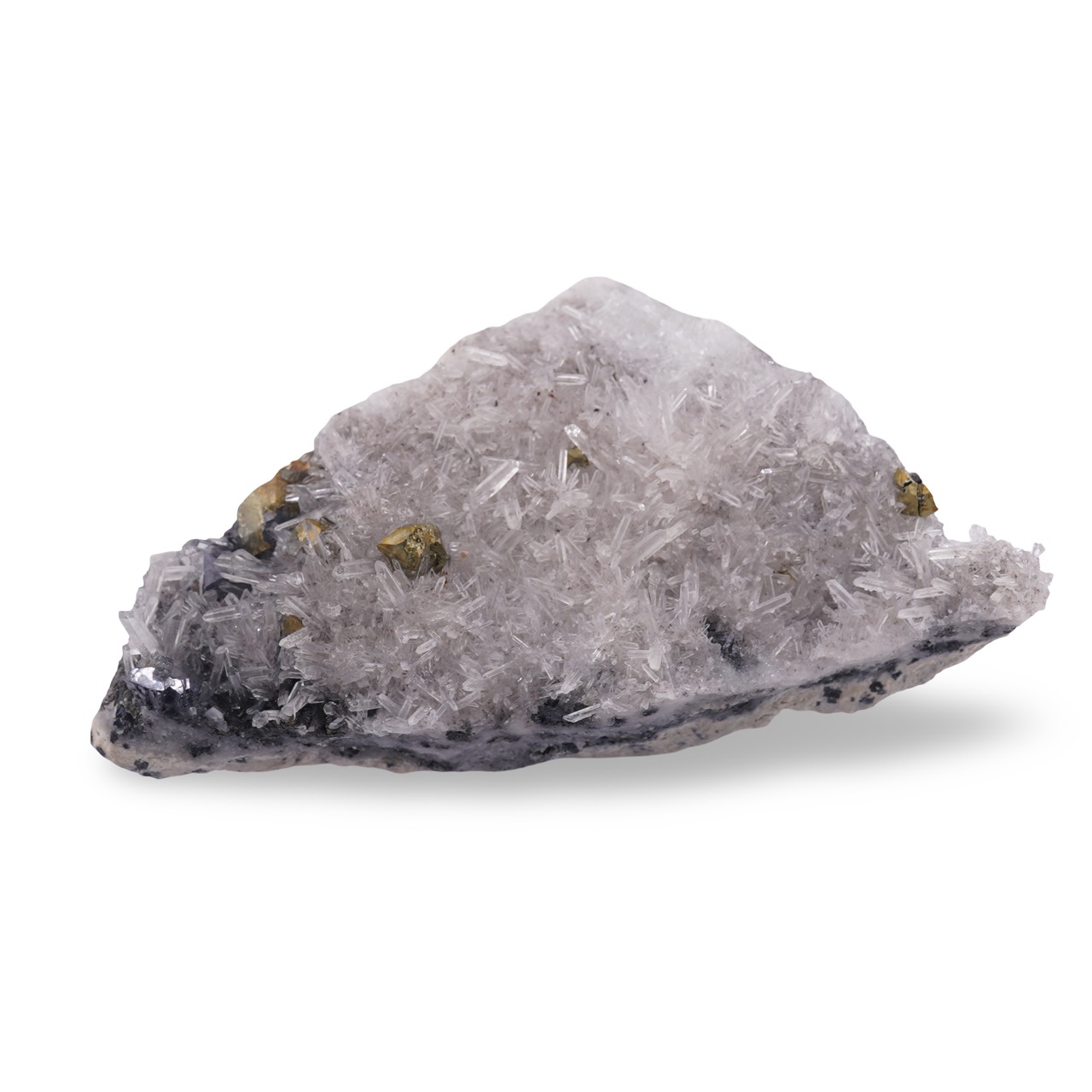 Gândit ca cristal de colecție, exemplarului i se potrivește de minune un loc în vitrină, pe birou sau pe o etajeră, unde se evidențiază prin contrastul natural dintre mineralele care îl compun. Piesa este 100% cristal natural, formată exclusiv din agregate minerale autentice, fără intervenții decorative. Cu aproximativ 11 × 7 cm și o greutate de 249 g, oferă o prezență stabilă și proporții potrivite pentru expunere discretă, dar vizibilă.
