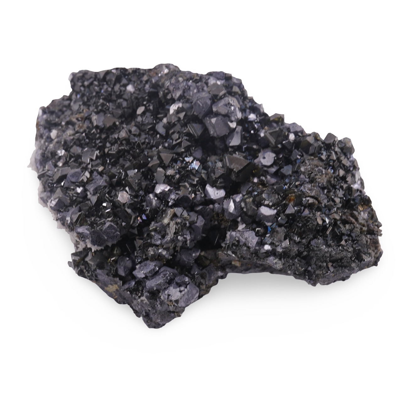 E58 este o piesă Floare de mină formată natural, provenită din Bulgaria, 100% cristal natural. Conceput ca cristal de colecție, acest exemplar reunește într-o singură matrice o combinație mineralogică apreciată: galenă cu fețe metalice, sfalerit cu reflexe discrete, inserții de pirită și un fundal de cuarț druzos care adaugă profunzime și lumină. Cu aproximativ 8,5 × 5,5 cm și 334 g, are o prezență echilibrată, potrivită pentru expunere pe birou, etajeră sau în vitrina ta mineralogică.