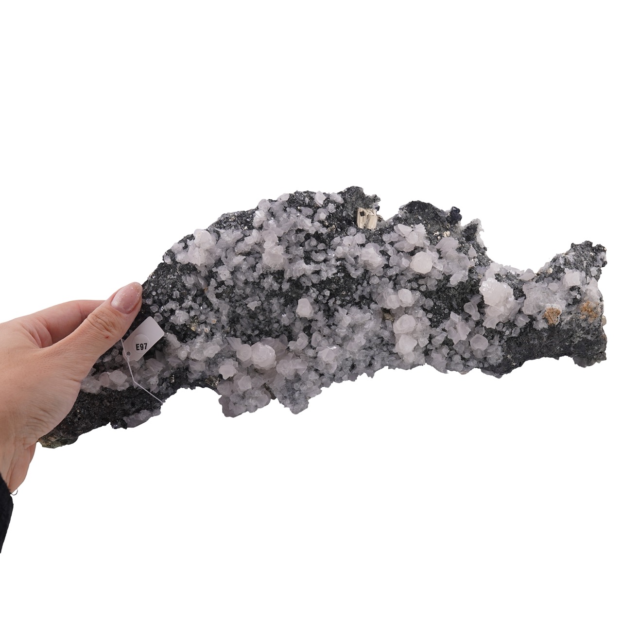 Dacă îți dorești un specimen care îmbină în mod natural galena, cuartul, sfaleritul și pirita într-o singură piesă, E97 îți poate completa frumos colecția și poate aduce un plus de autenticitate spațiului tău.