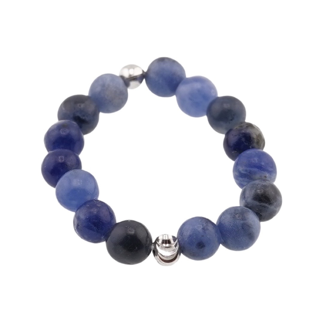 Inel pe elastic cu sodalit A+ si argint 925, sfere 3-4mm. Confectionat din pietre semipretioase si argint 925, pe elastic.