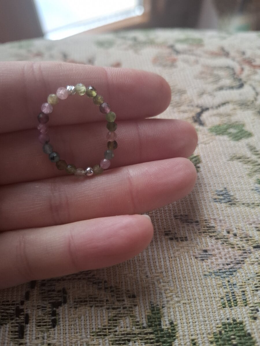 Inel pe elastic cu turmalina multicolora si argint 925, sfere fatetate 3mm. Confectionat din pietre semipretioase si argint 925, pe elastic.
