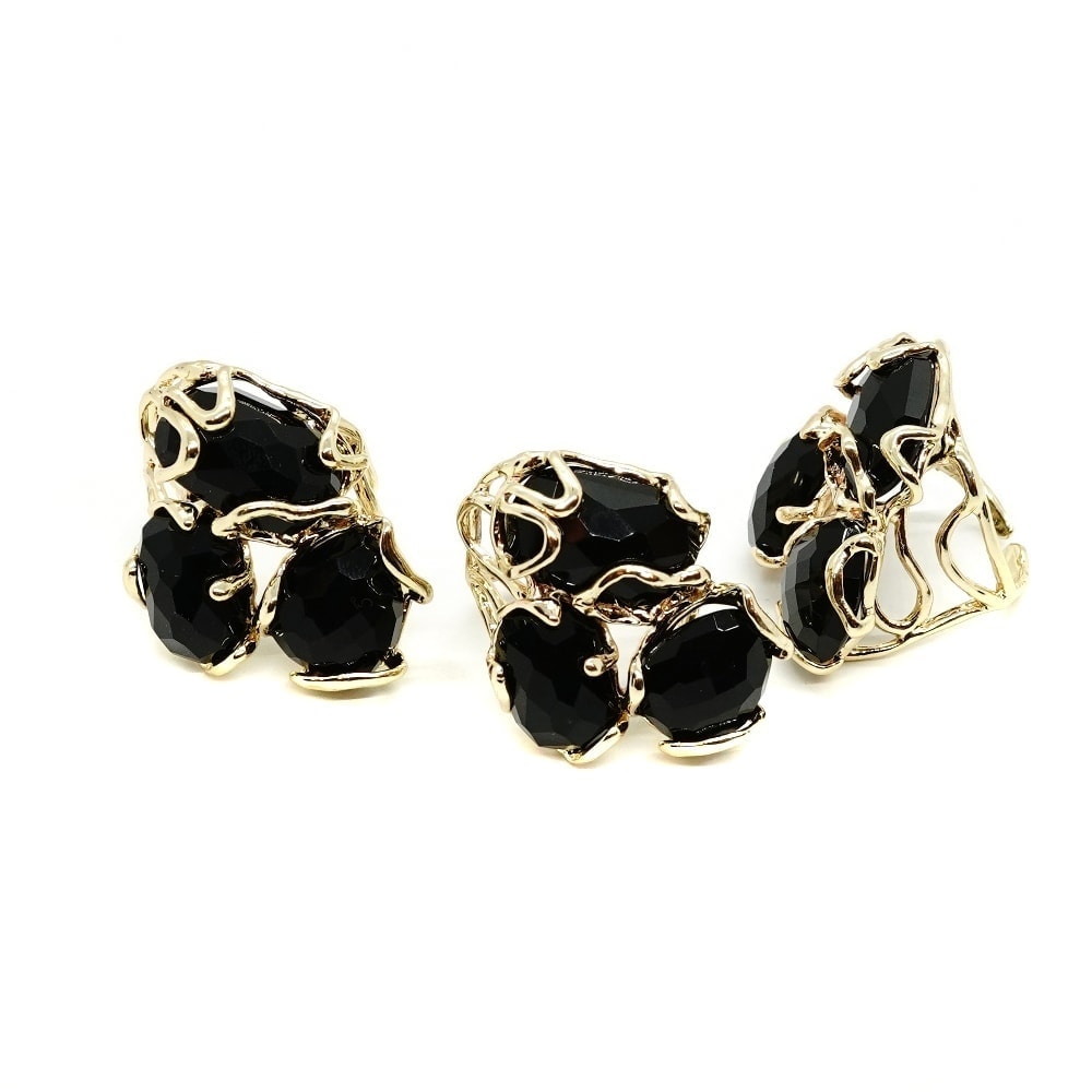 Inel reglabil cu 3 pietre fatetate de Obsidian, montura aurie. Se ofera certificat de garantie si conformitate.