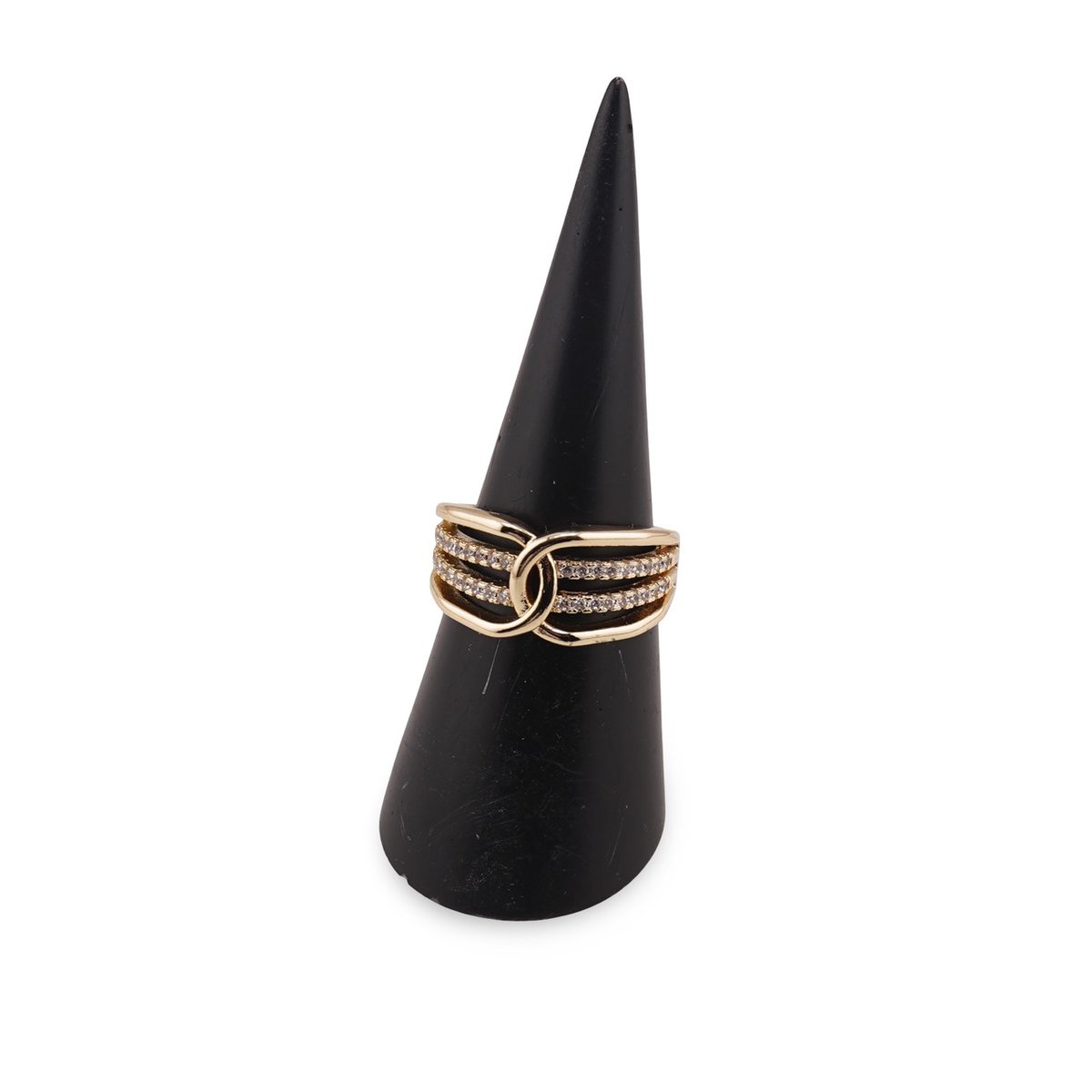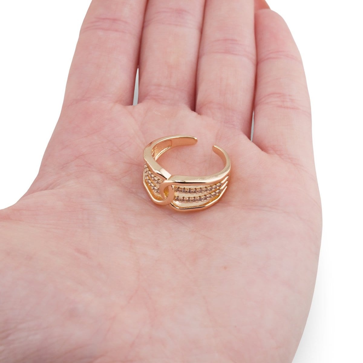 Inel reglabil Cupru placat cu Aur galben 14k, model cataramă cu zirconii
