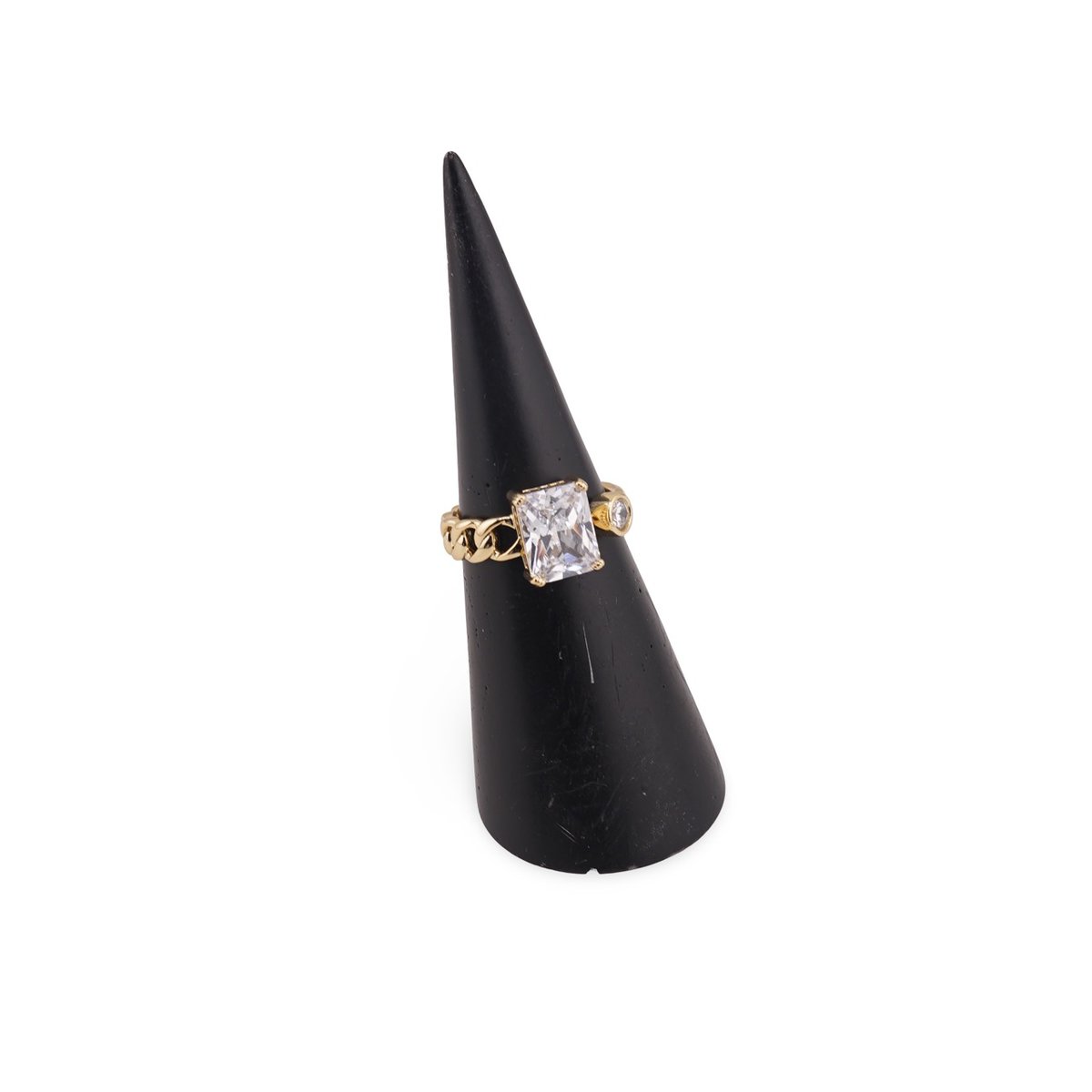 Inel reglabil Cupru placat cu Aur galben 14k, model chain cu zirconiu dreptunghiular