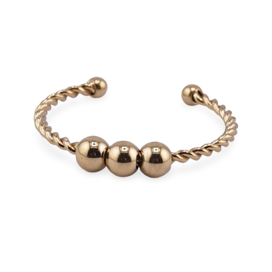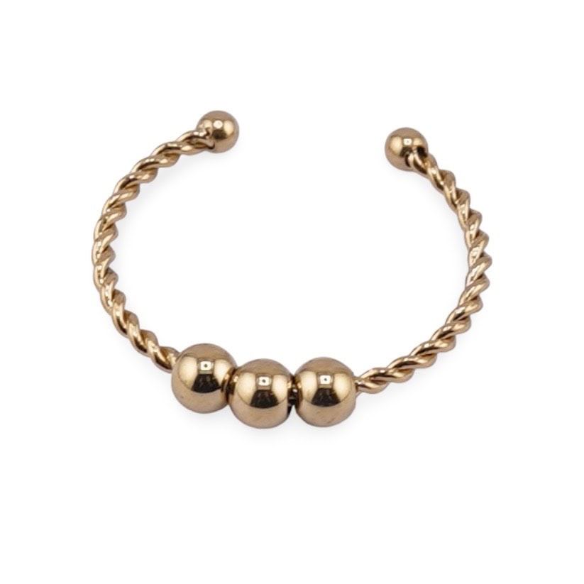 Inel reglabil din cupru placat cu aur galben 18k, model răsucit cu trei sfere