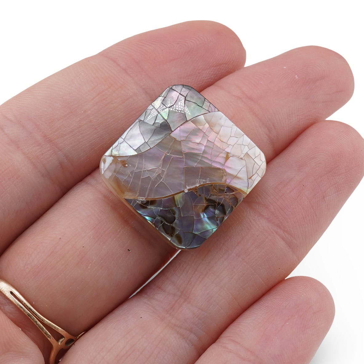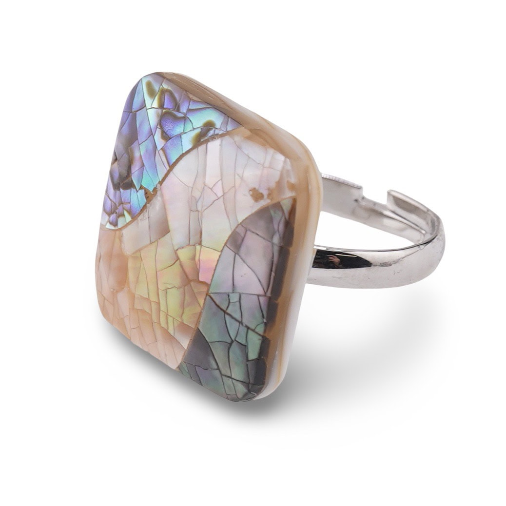 Inel reglabil patrat cu sidef si scoica abalone mozaic