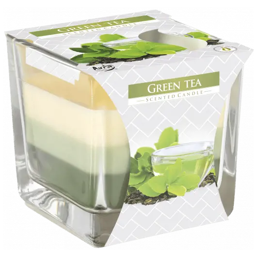 Lumanare parfumata Bispol in trei culori, pahar patrat - Green Tea