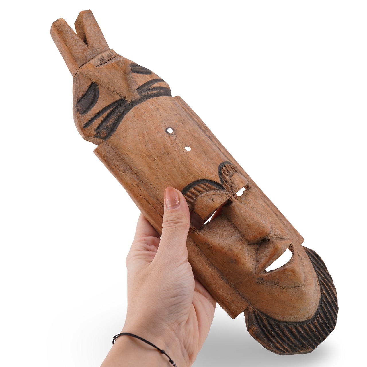 Masca decorativă vintage din lemn cu motive tribale, 32cm