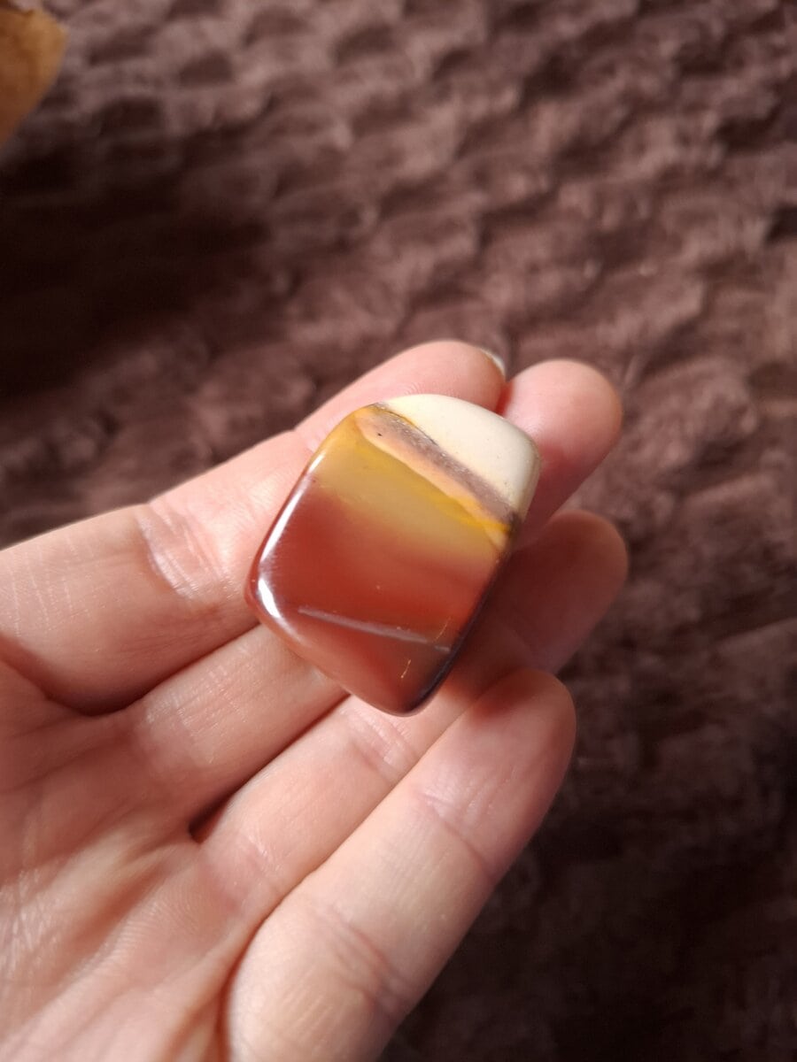 Mookaitul, cunoscut și ca jasp australian sau „piatra vitalității”, este un cristal natural 100% șlefuit în formă rulată, ușor de purtat și plăcut la atingere. Cu nuanțe calde de roșu, acest mic companion poate fi folosit în momentele în care dorești mai multă energie, creativitate și inspirație sau când vrei să cultivi o stare de calm și compasiune în viața de zi cu zi.