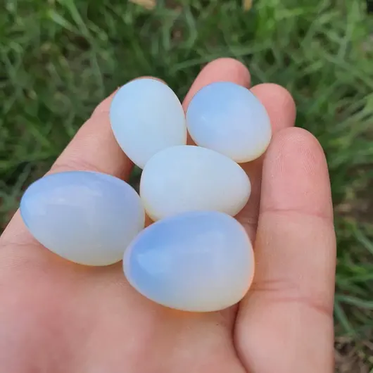 Un obiect decorativ cu rol de susținere în practici personale, Ou din Opalit, mic - 23mm este potrivit pentru momente de meditație, mindfulness sau aranjamente feng shui. Realizat din opalit (cunoscut și ca opalite, sticlă sintetică opalescentă) în nuanțe de albastru cu reflexe delicate, poate încuraja creativitatea, inspirația și o stare tonică, utilă în proiecte și activități zilnice.