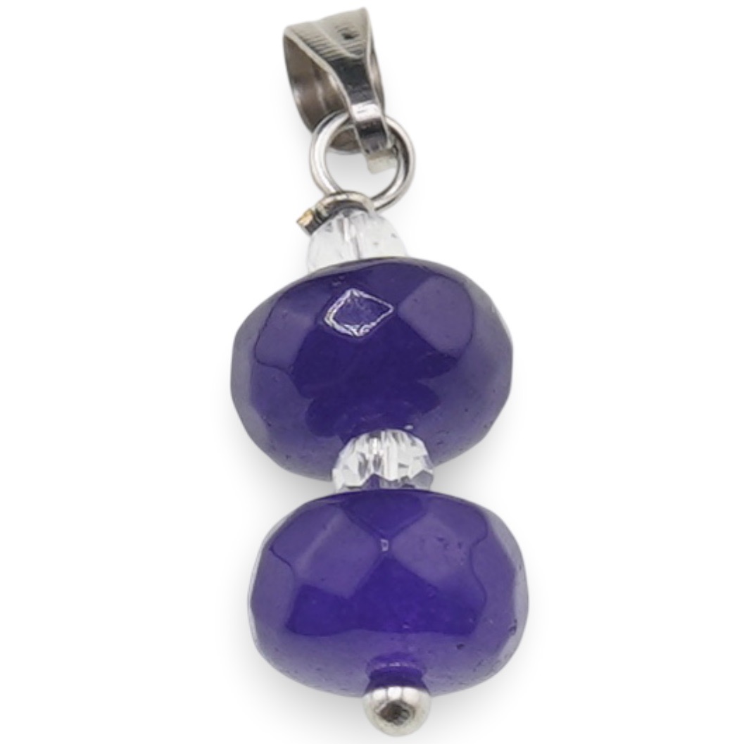 Pandantivul din agat mov cu discuri fațetate de 8 mm și zirconiul transparent în sfere fațetate de 3 mm este o alegere inspirată pentru tine dacă îți dorești un accesoriu elegant, care să îmbine frumusețea pietrelor semiprețioase cu susținerea interioară de zi cu zi. Nuanta de mov, obținută prin vopsirea cristalului natural, se îmbină armonios cu strălucirea clară a zirconului, oferind un contrast plăcut între profunzime și luminozitate.