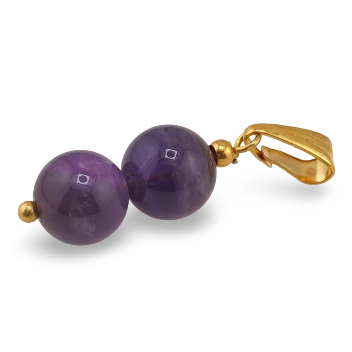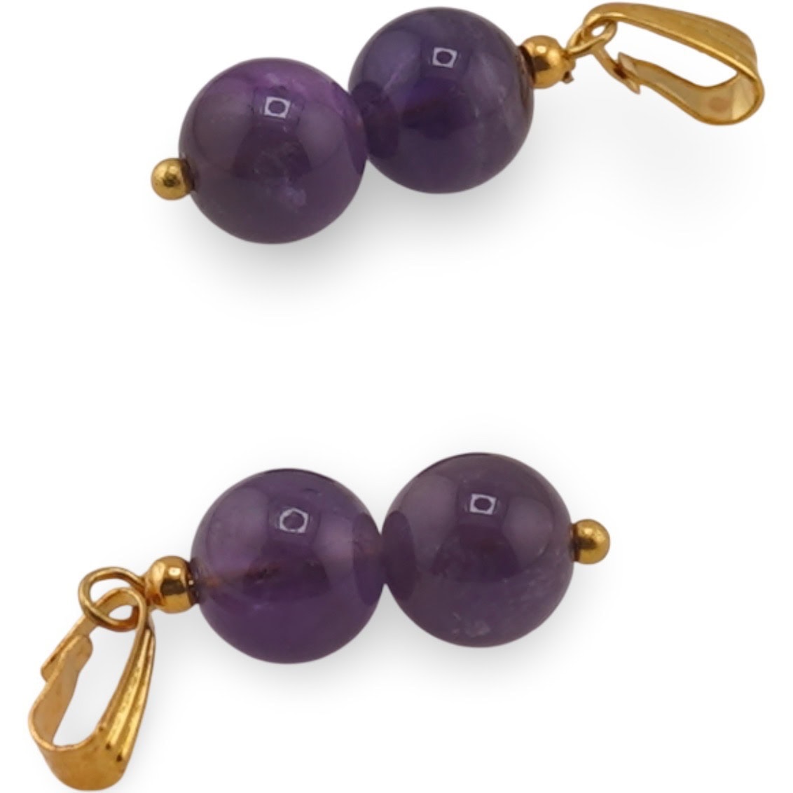Pandantivul cu ametist format din sfere de 8 mm, accentuate de detalii din metal auriu, este creat pentru tine dacă îți dorești mai multă liniște interioară și claritate mentală în fiecare zi. Nuanța sa mov, profundă și calmă, îl transformă într-un accesoriu ușor de integrat atât în ținutele de zi, cât și în cele de seară, păstrând în același timp energia blândă a cristalului natural de ametist.