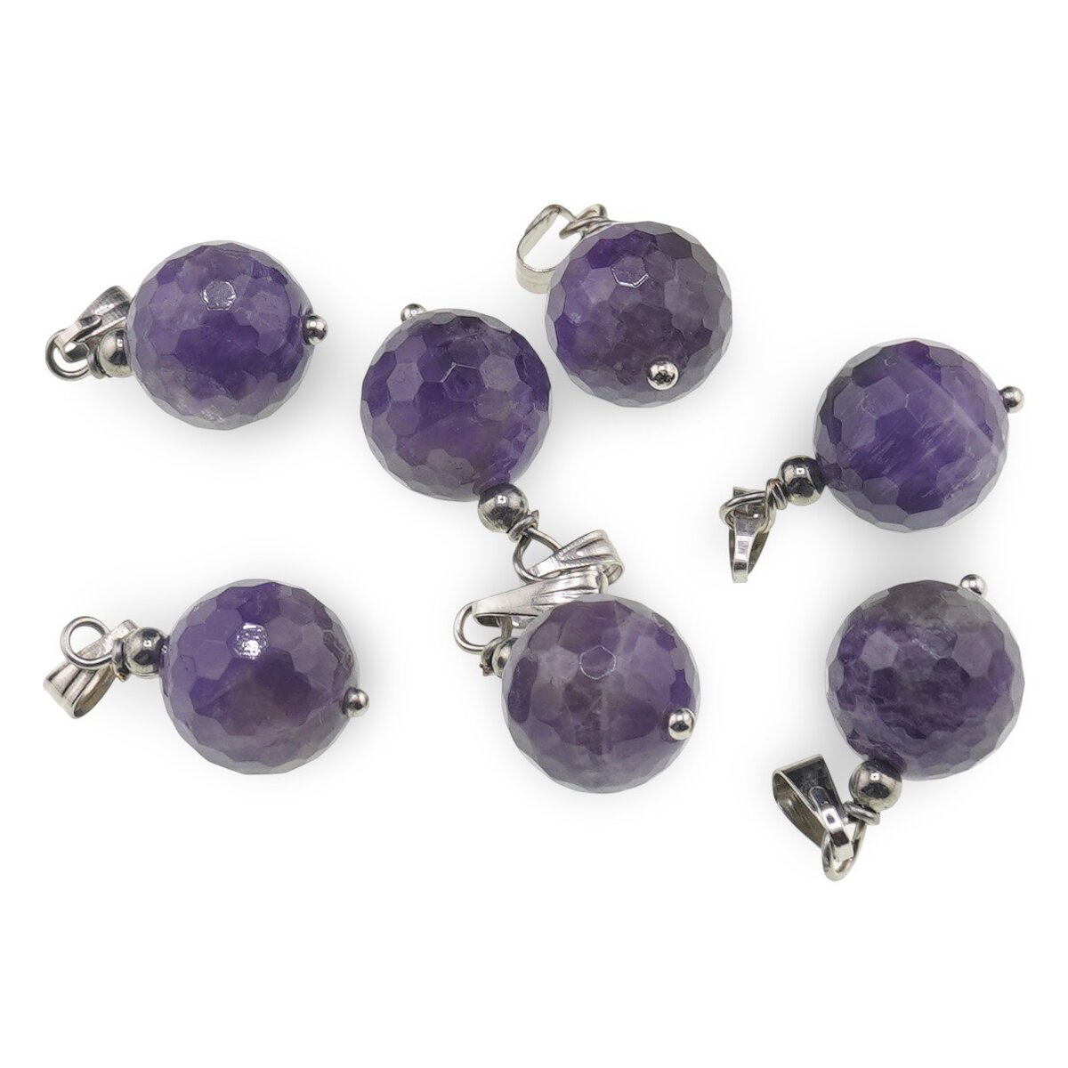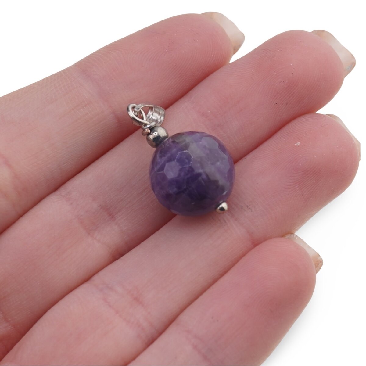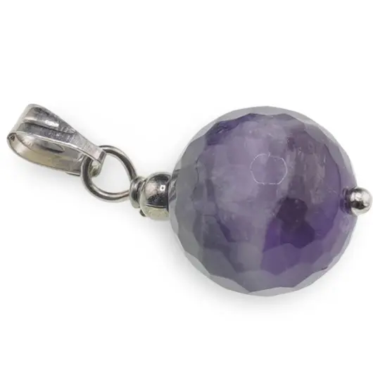 Pandantiv Ametist sfere fațetate, 12mm – calm, claritate și protecție în viața de zi cu zi