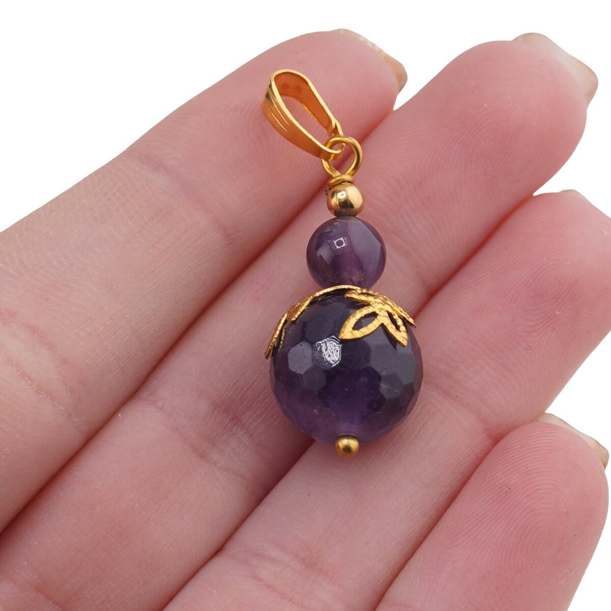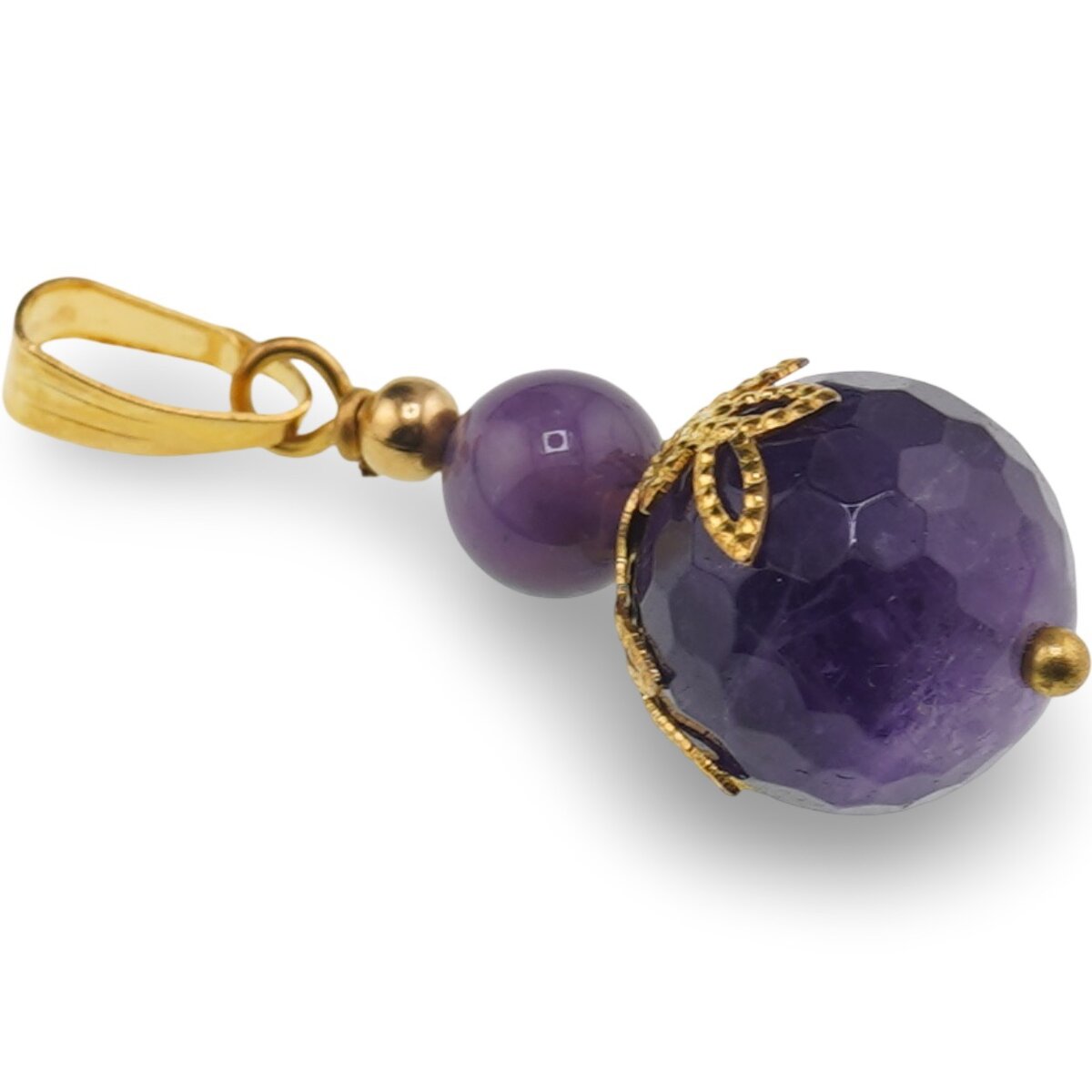 Pandantiv Ametist sfere și flori aurii, 6–12mm