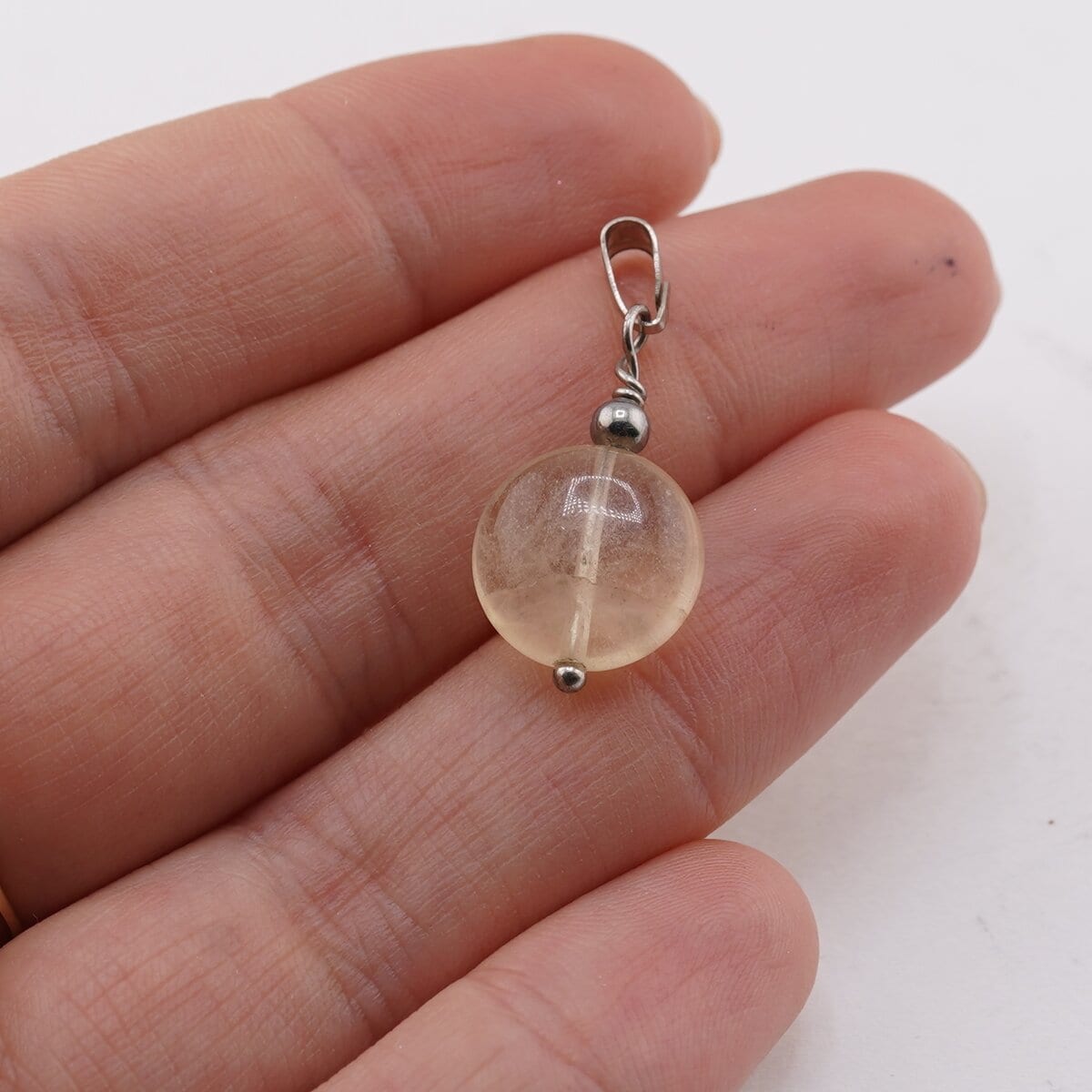 Descoperă un pandantiv discret și plin de lumină, creat din citrin natural 100%. Forma de bănuț, cu diametrul de 12 mm, pune în valoare nuanța caldă de galben specifică acestui cuart galben, cunoscut și ca „piatra succesului”. Este o alegere potrivită dacă îți dorești mai multă claritate, energie și un impuls blând către prosperitate, într-un accesoriu ușor de purtat zi de zi.