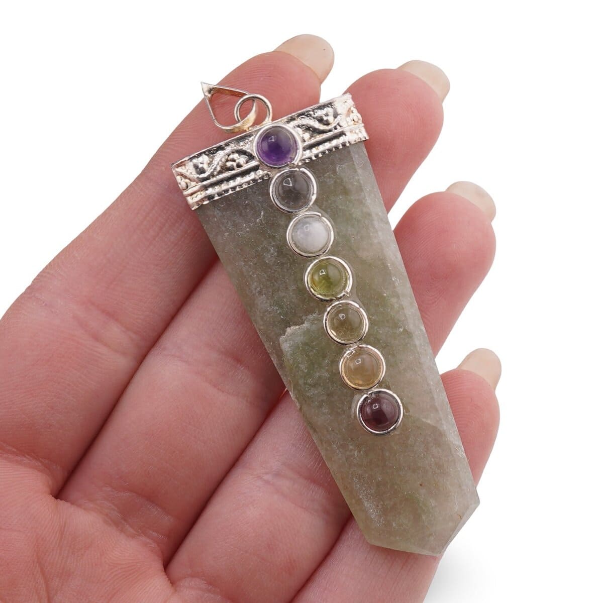 Pandantiv cu cele sapte chakre si Aventurin, model sabie 50-60mm