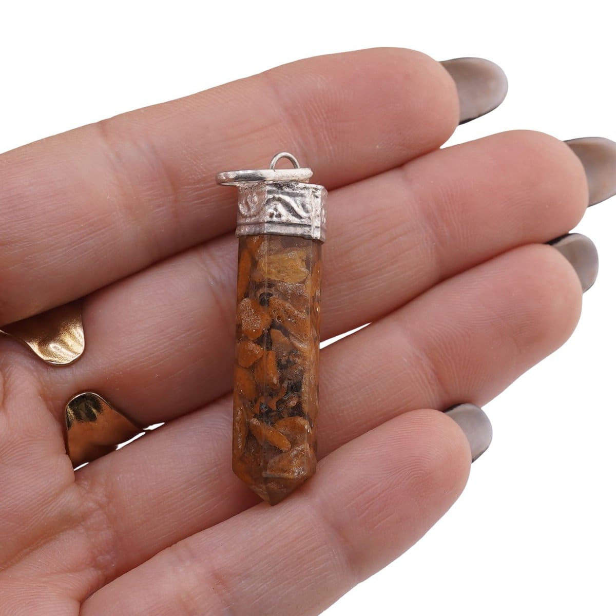 Pandantivul cu vârf și montură argintie Calcit în rășină este o alegere inspirată dacă îți dorești un accesoriu cu cristale naturale care să te însoțească în momentele în care ai nevoie de energie și vitalitate, protecție energetică și susținere interioară. Lasă-l să devină aliatul tău discret, pe care îl porți zi de zi aproape de inimă, ca un memento că ești pe drumul tău și ai resursele necesare pentru a crește și a străluci în ritmul tău.