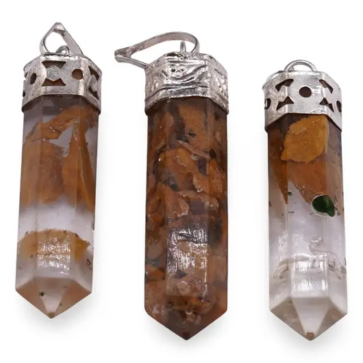 Pandantiv cu vârf și montură argintie Calcit în rășină