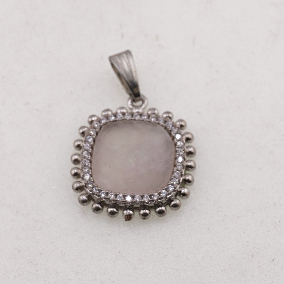 Pandantiv Cuart roz patrat cu montura argintie 20mm
