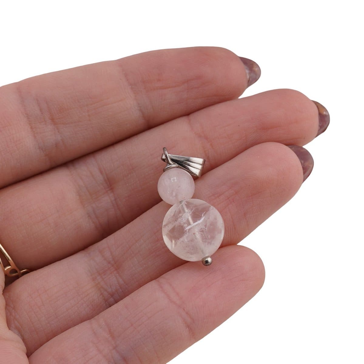 Delicat și ușor de purtat, acest pandantiv din cuart roz aduce împreună o sferă fină de aproximativ 6 mm și un element plat tip bănuț, de circa 11–13 mm. Nuanța sa roz, plăcută și caldă, pune în valoare simplitatea formelor și îți oferă un accesoriu discret, potrivit atât pentru ținutele de zi cu zi, cât și pentru momentele în care vrei să adaugi o notă atent aleasă în look-ul tău.