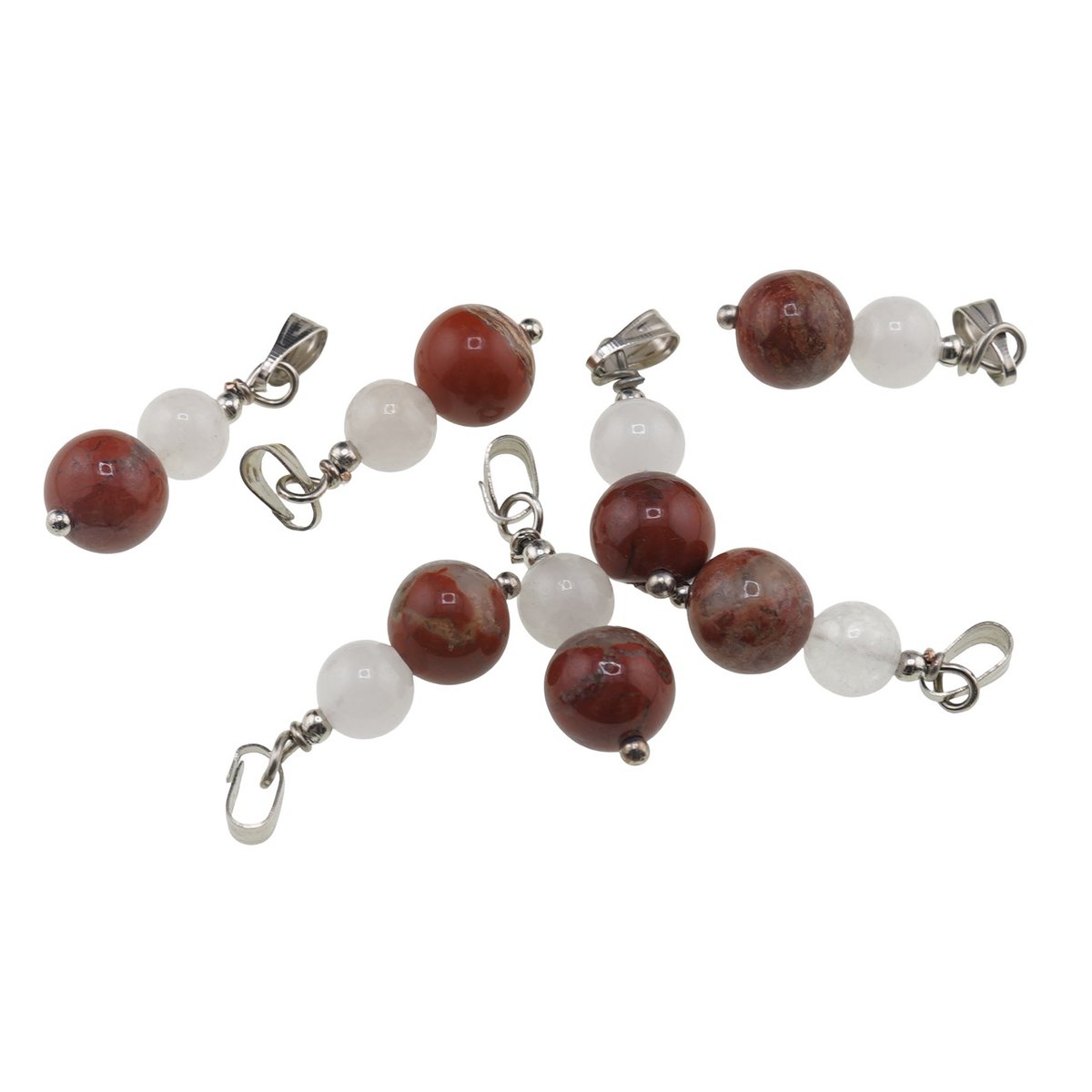 Pandantiv Cuart roz si Jasp rosu sfere, 6-8mm