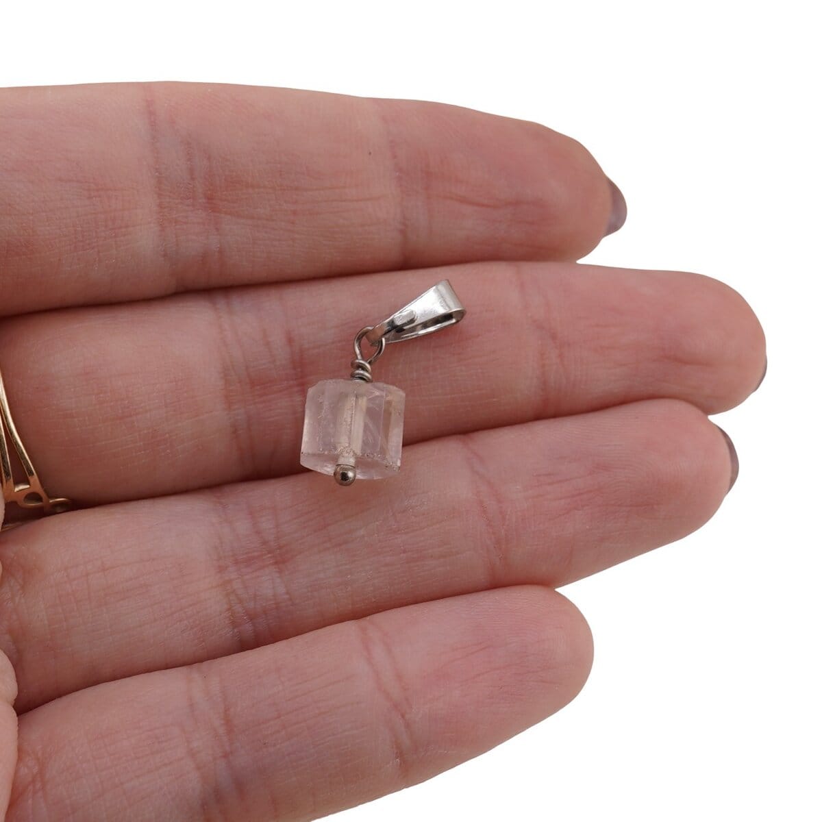 Pandantivul din cuart roz în formă de tub fațetat este gândit pentru tine, dacă apreciezi bijuteriile simple, cu semnificație. Nuanța roz plăcută aduce o notă caldă oricărei ținute, iar tăieturile fine surprind lumina într-un mod discret. Este o piesă ușor de purtat zi de zi, confortabilă și versatilă.