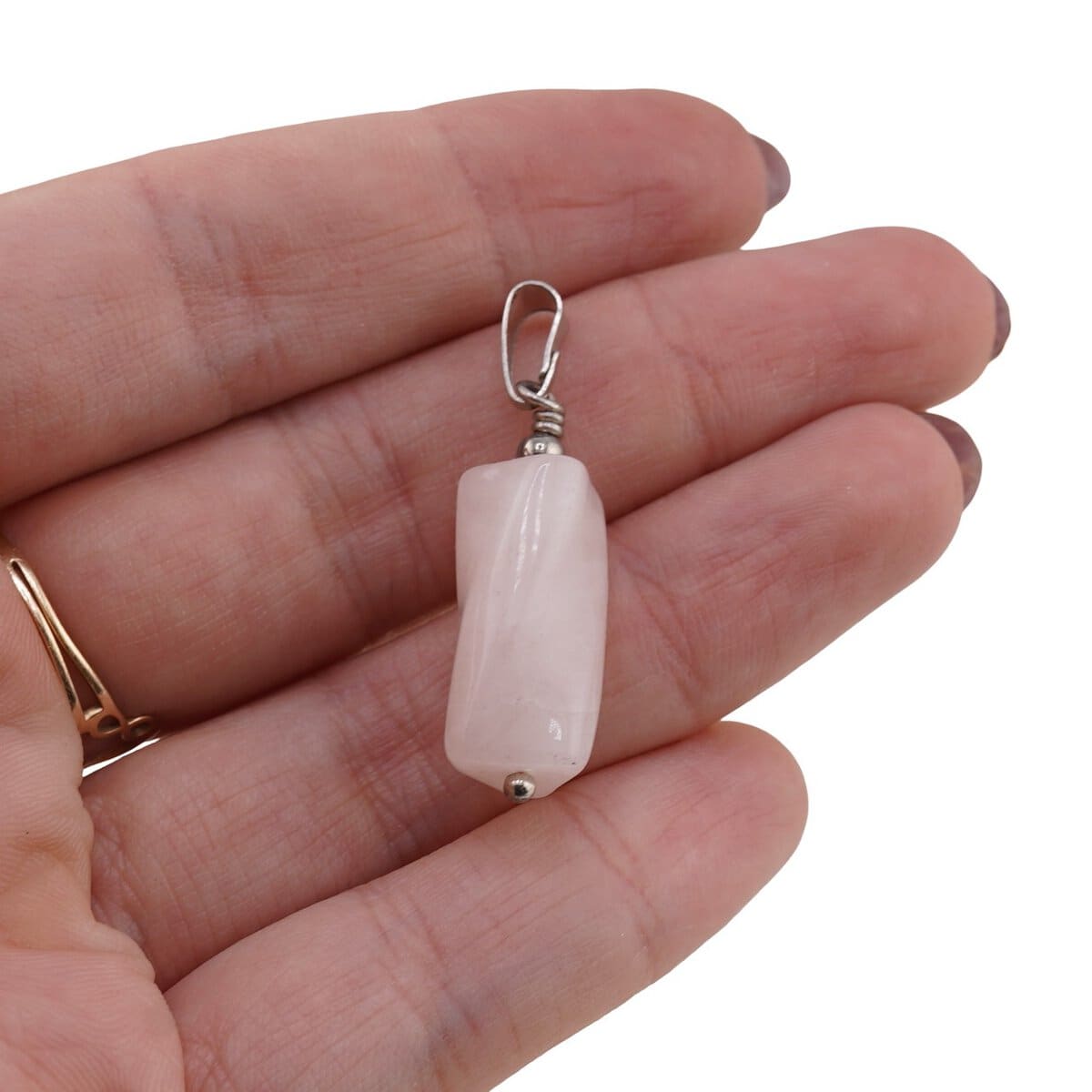 Cuartul roz este cunoscut pentru vibrația sa blândă, asociată cu deschiderea inimii, bunătate și armonie interioară. Purta-l aproape de piept și lasă-l să-ți reamintească să îți păstrezi calmul în agitația zilnică. Culoarea roz transmite tandrețe și echilibru, iar în combinație cu forma răsucită, pandantivul captează lumina într-un mod subtil, oferind un accent delicat oricărei ținute.