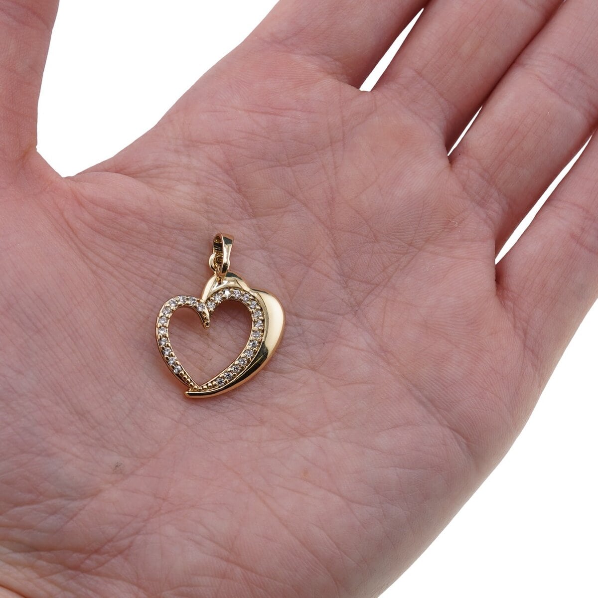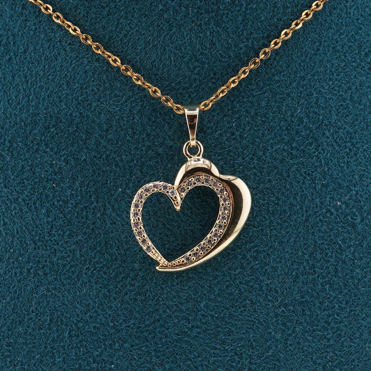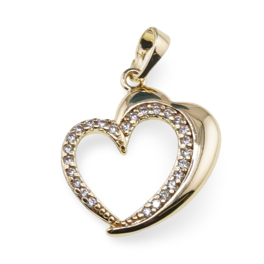 Pandantiv din cupru placat cu aur galben 18k, model inima cu zorconii si margine dubla