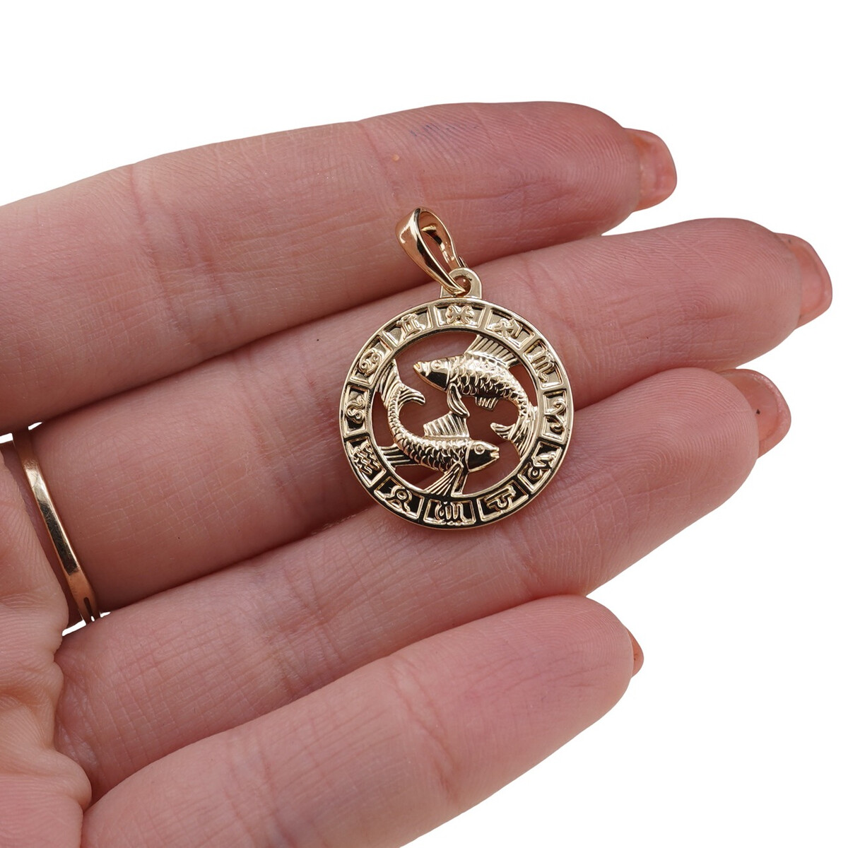 Dacă ești în căutarea unui cadou inspirat pentru cineva drag, născut în zodia Pești, acest pandantiv rotund poate transmite mesajul că îl cunoști și îl apreciezi. Simbolul clar al zodiei, reliefat pe fondul auriu, spune povestea unei personalități delicate și profunde, într-o formă simplă și elegantă.