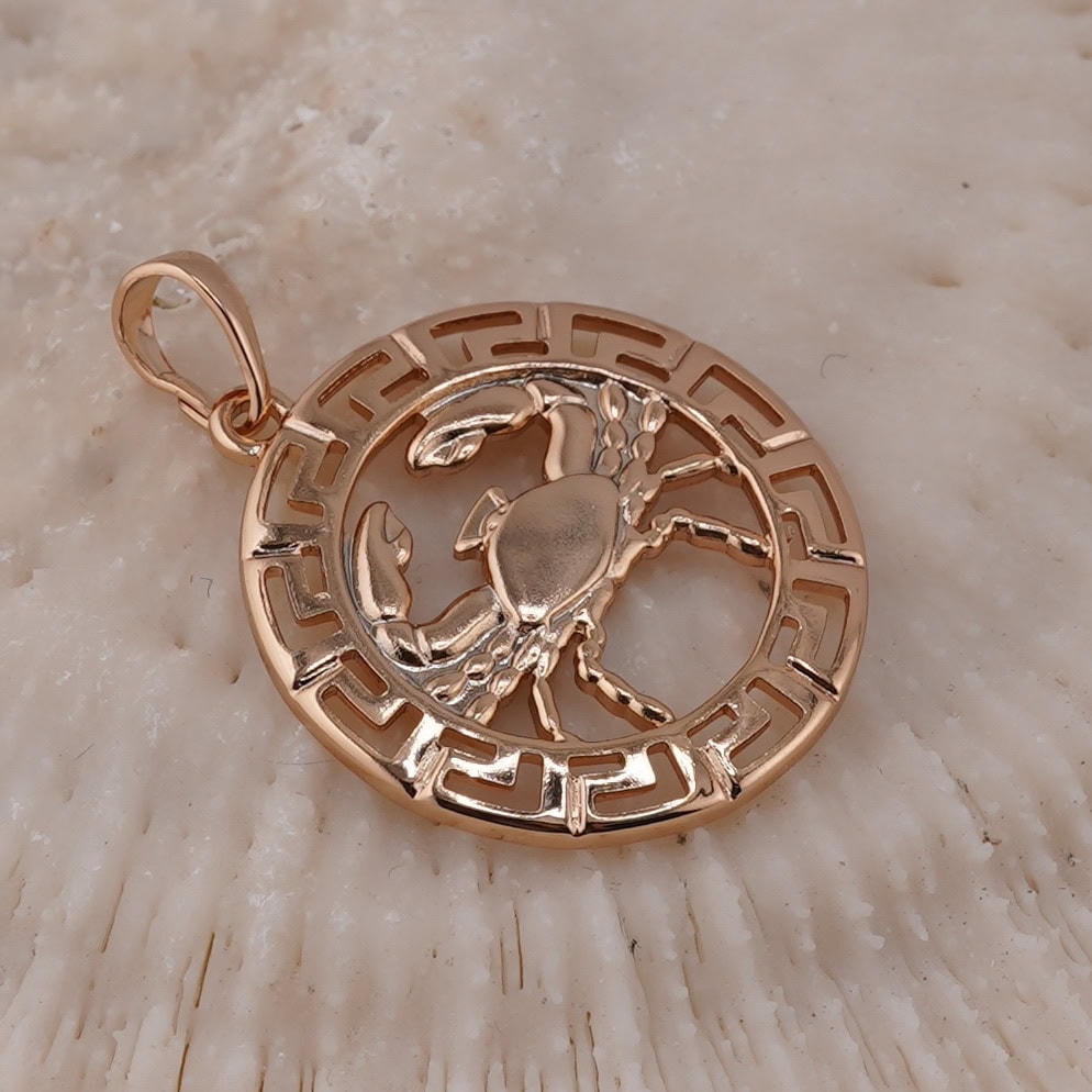 Pandantiv din cupru placat cu aur roz 18k rotund pentru zodia Rac, 25mm.