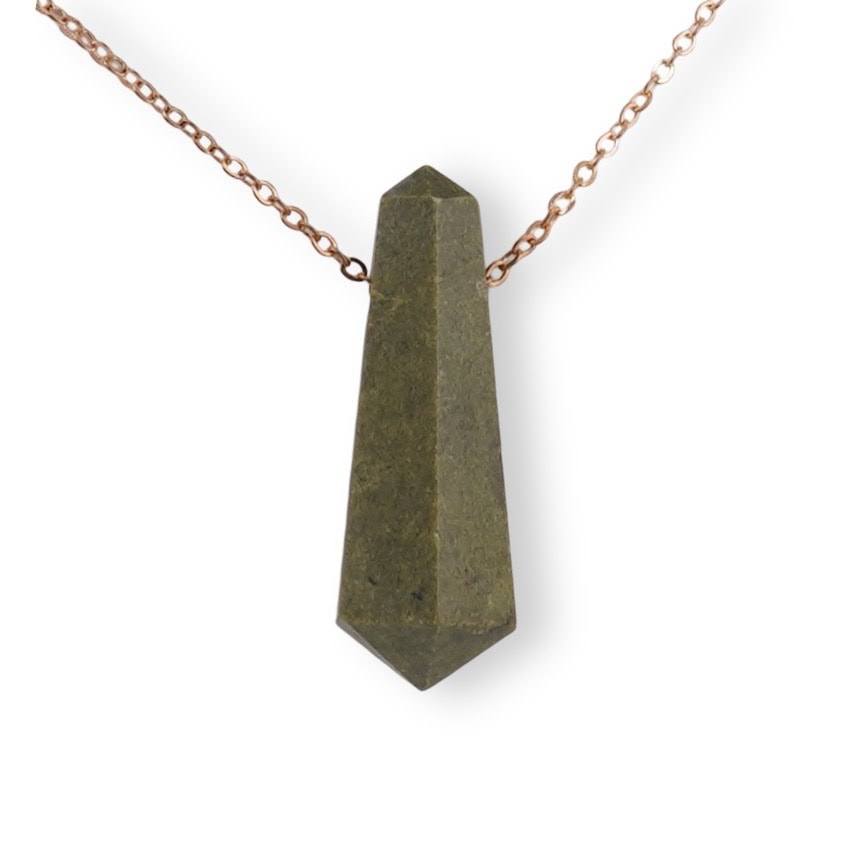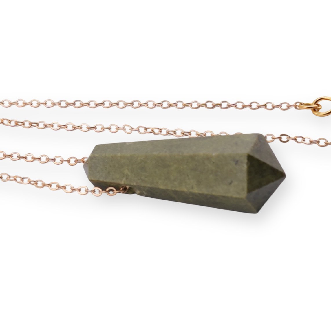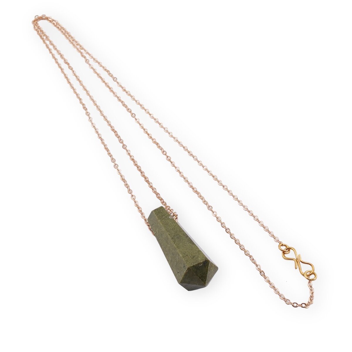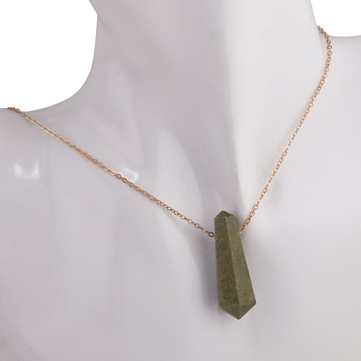 Pandantiv dublu varf cu gaura orizontala si lant auriu, Jad verde 40mm