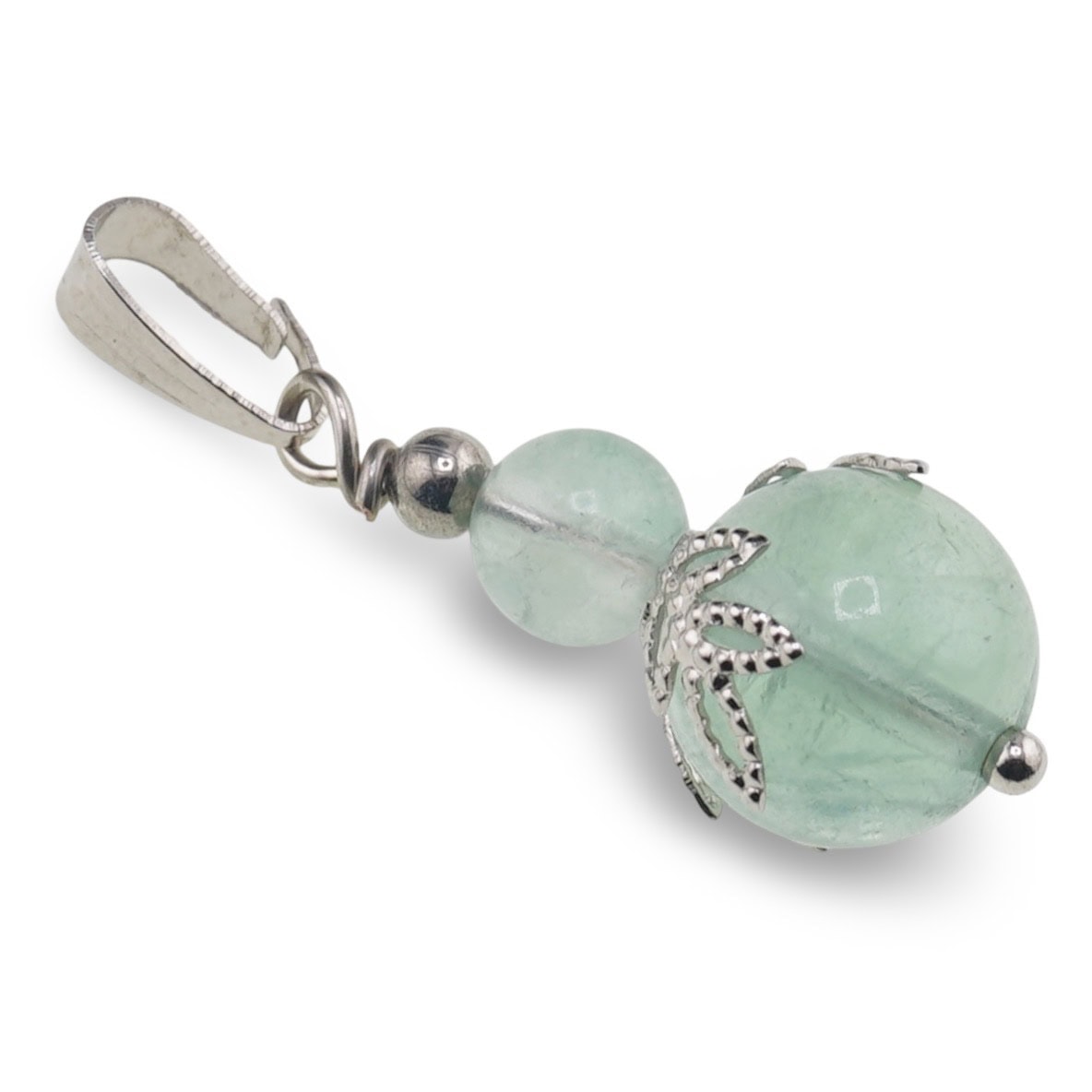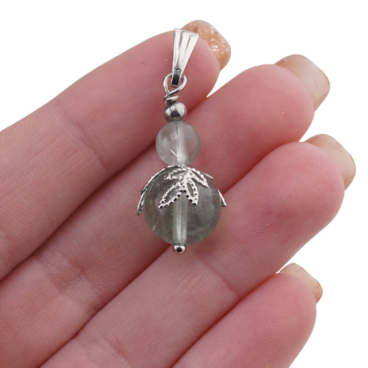 Pandantiv Fluorit sfere și flori argintii, 6-10mm