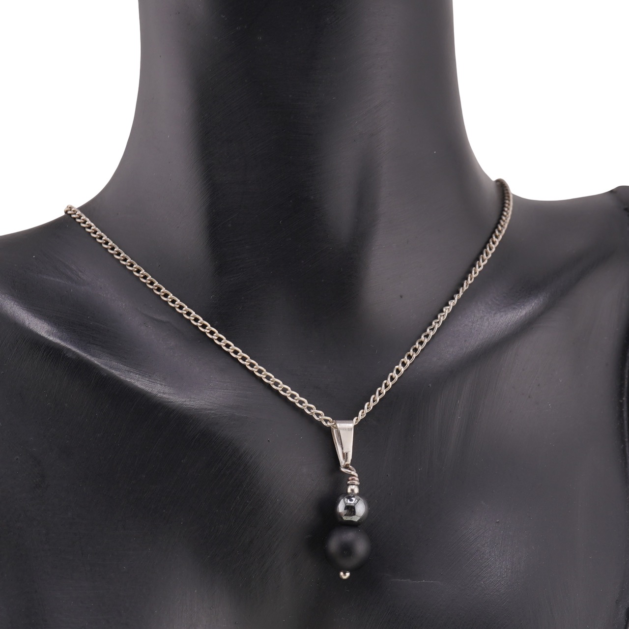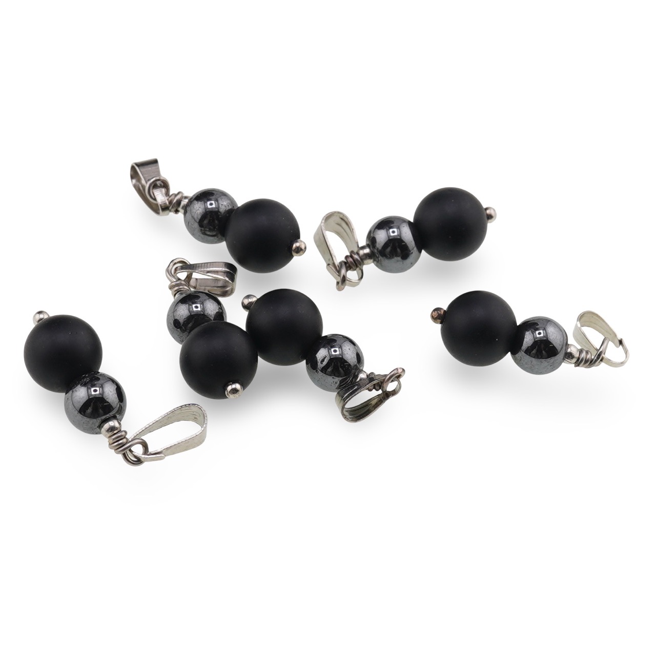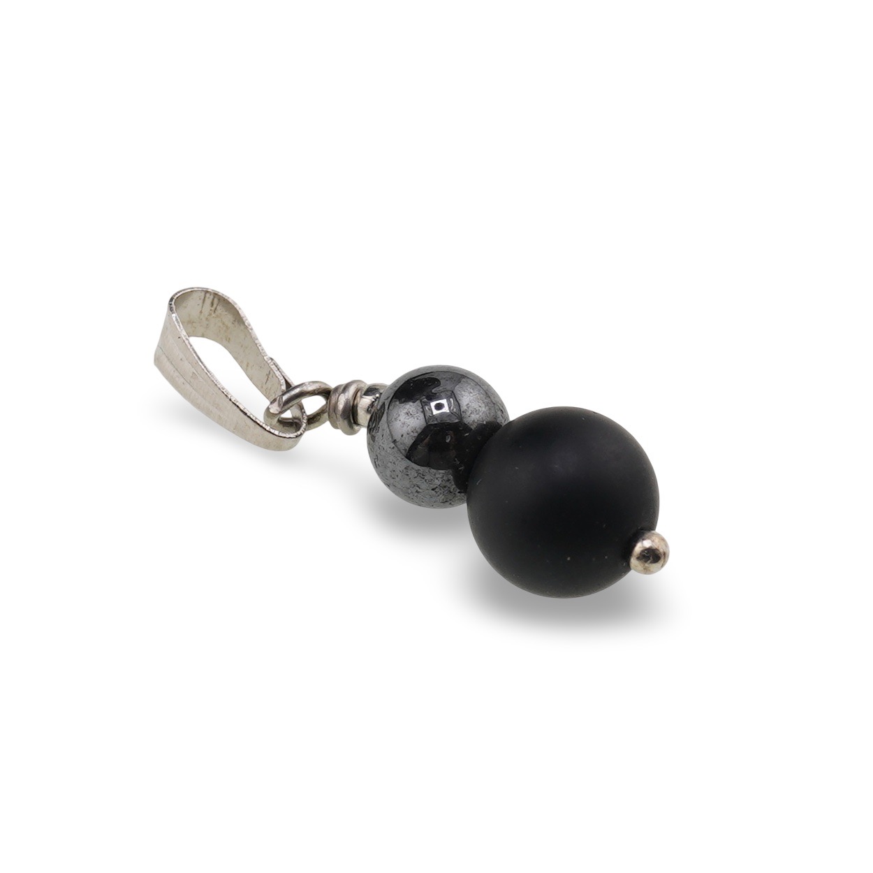 Pandantiv Hematit si Onix negru mat sfere, 6-8mm