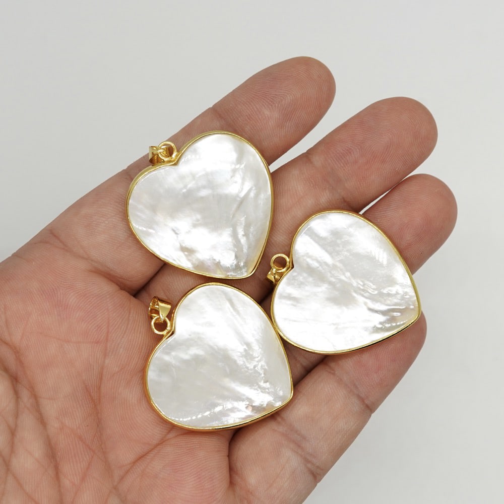 Pandantiv inima din sidef cu montura aurie - 30mm este o bijuterie delicată, cu un aspect luminos și feminin, potrivită pentru ținutele de zi cu zi sau pentru momentele în care îți dorești un accesoriu cu semnificație discretă. Realizat din sidef natural 100%, în nuanțe de alb, pandantivul evidențiază frumusețea firească a acestui material cunoscut și sub numele de Mother of Pearl.