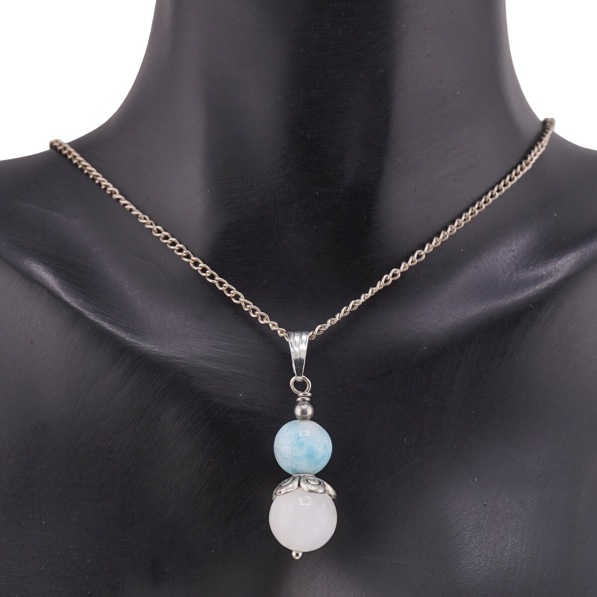 Pandantiv Larimar și Selenit sfere cu element floare, 8-10mm